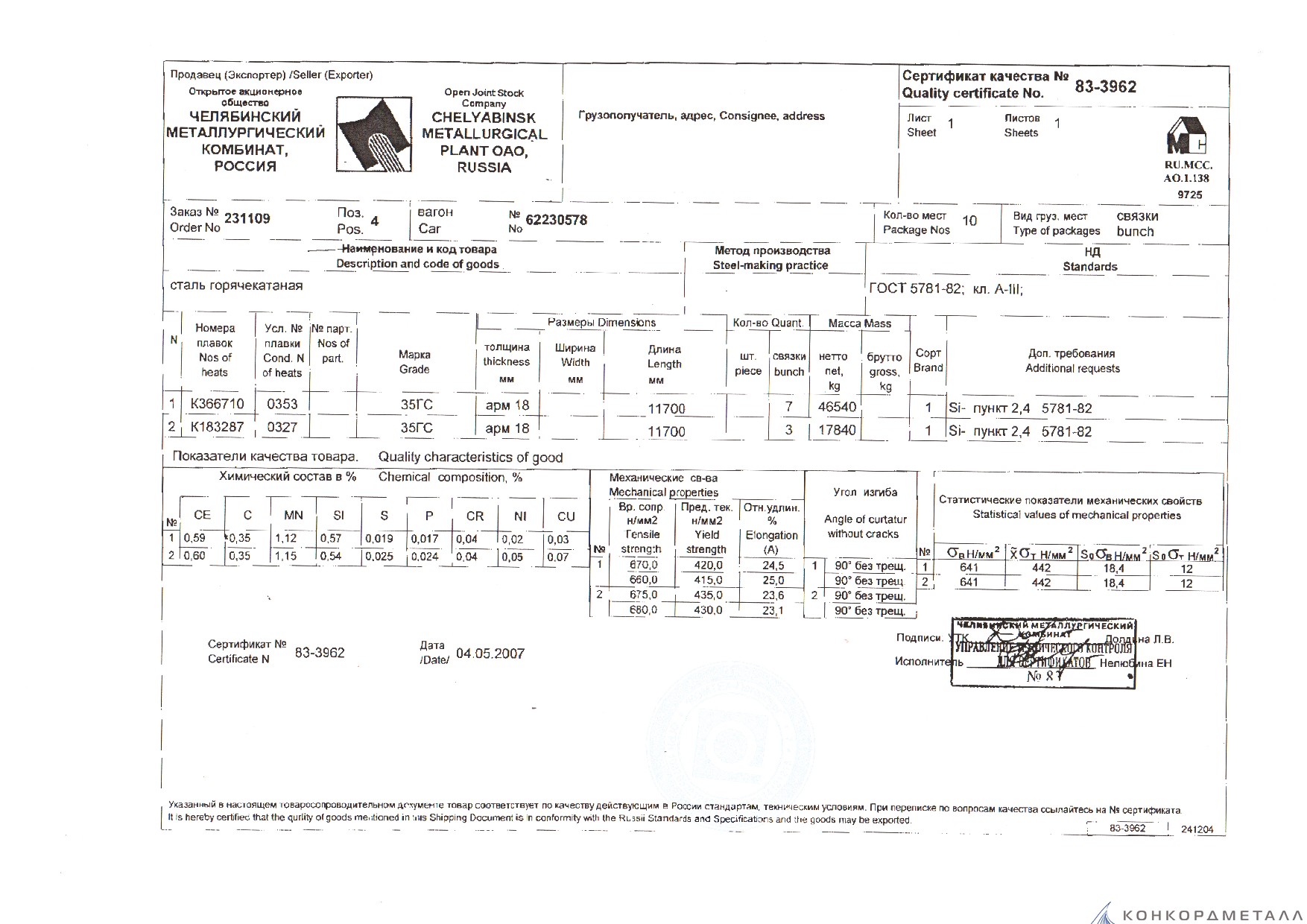 С каждой товарной позицией мы предоставляем все сертификаты и паспорта качества, а также товарно-транспортную накладную.