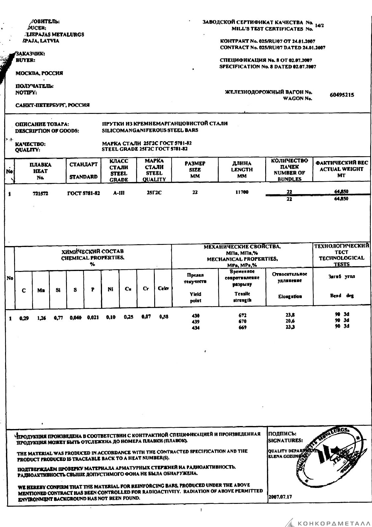 Наша металлобаза занимается комплексными поставками строительных материалов от ведущих производителей в отрасли стройматериалов. Марка у данной арматуры - А3, а диаметр- 22 мм. Выпускается с использованием следующих марок стали: 25Г2С. Цены на всю нашу продукцию указаны из расчета за 1 тонну. Возможна резка под необходимый Вам размер.