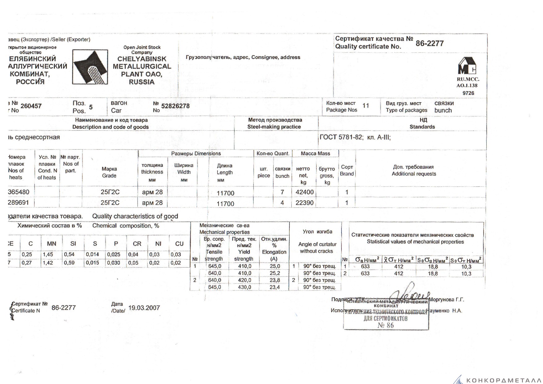 С каждой товарной позицией мы предоставляем все сертификаты и паспорта качества, а также товарно-транспортную накладную.