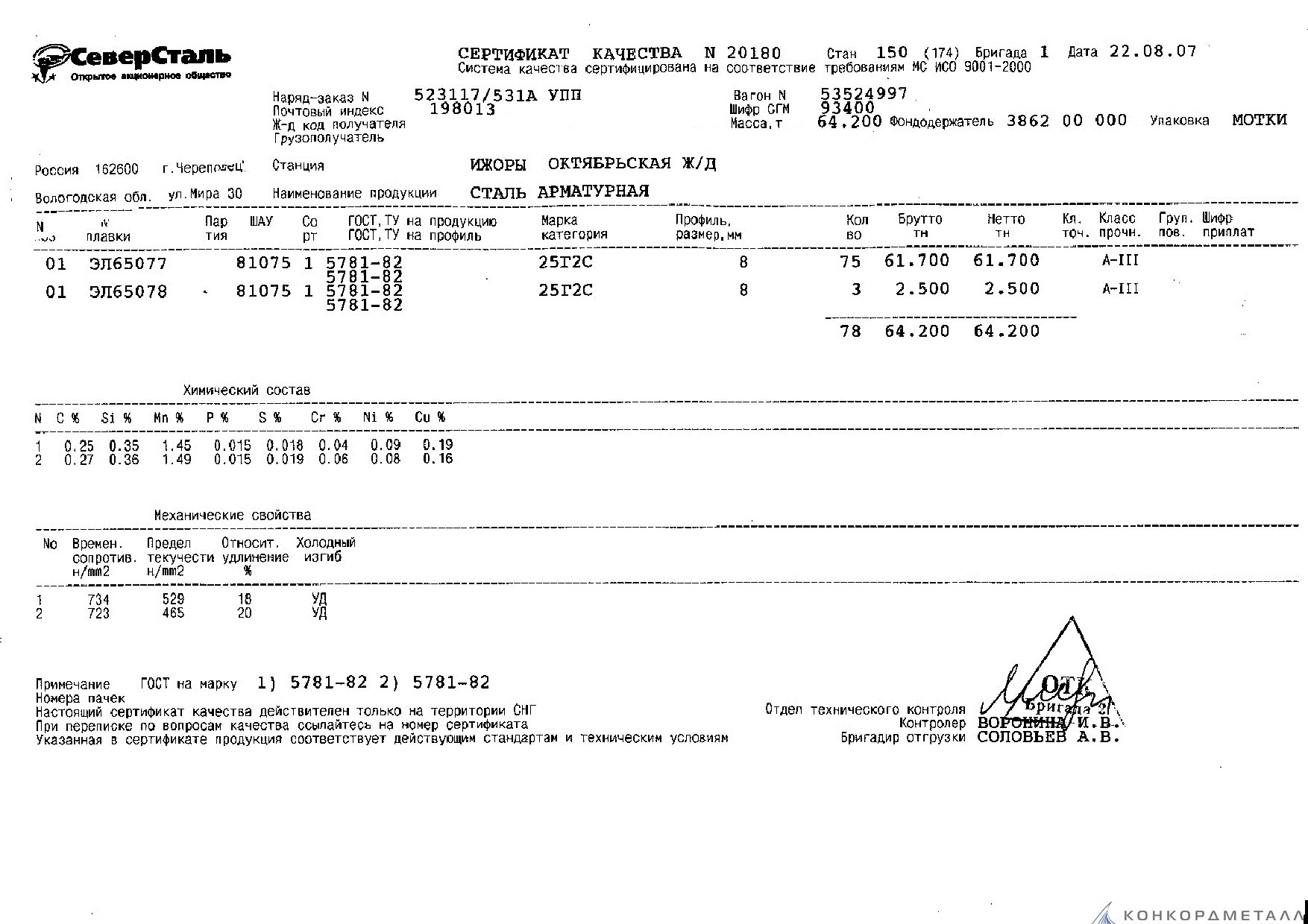 С каждой товарной позицией мы предоставляем все сертификаты и паспорта качества, а также товарно-транспортную накладную.