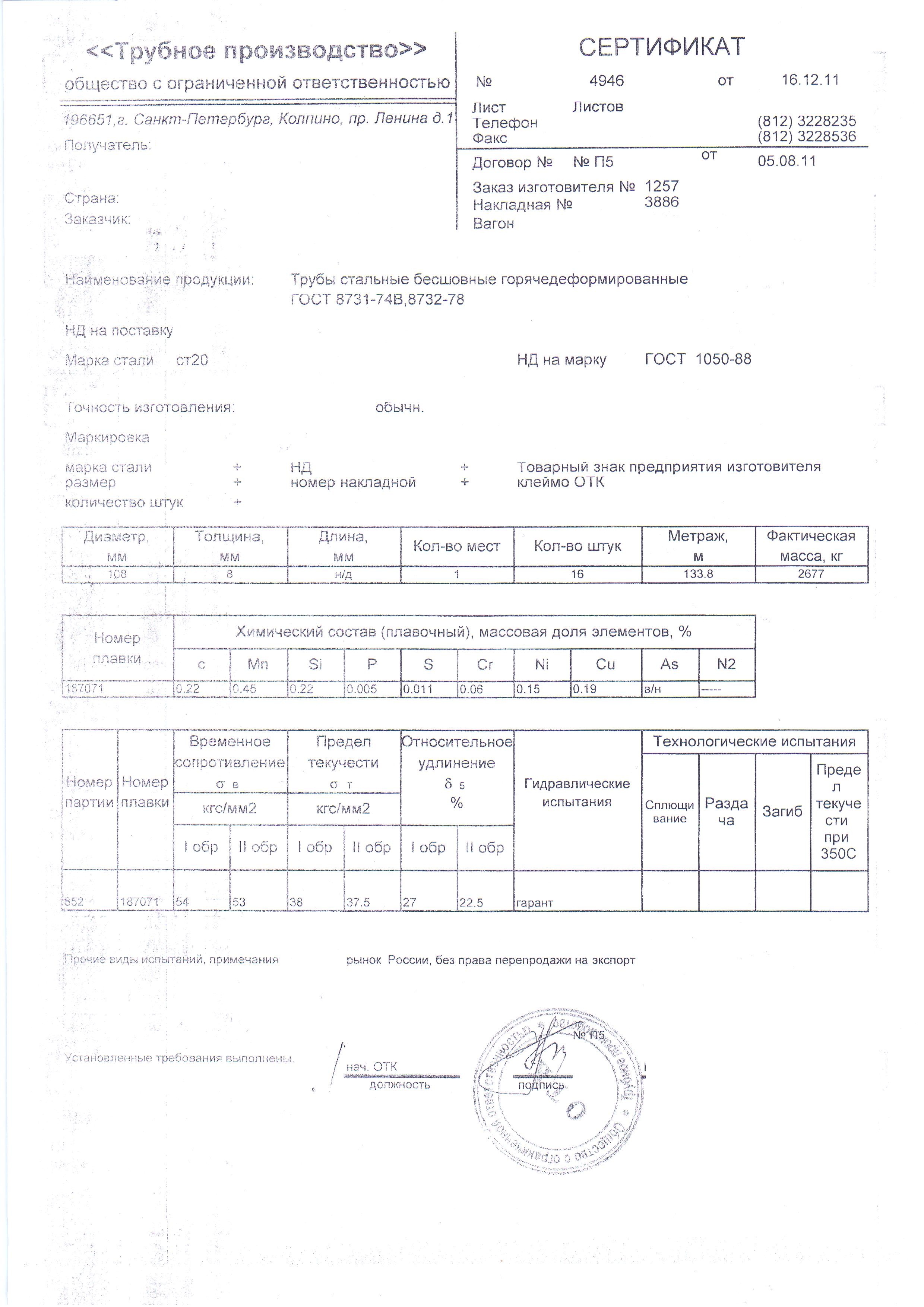 С каждой товарной позицией мы предоставляем все сертификаты и паспорта качества, а также товарно-транспортную накладную.