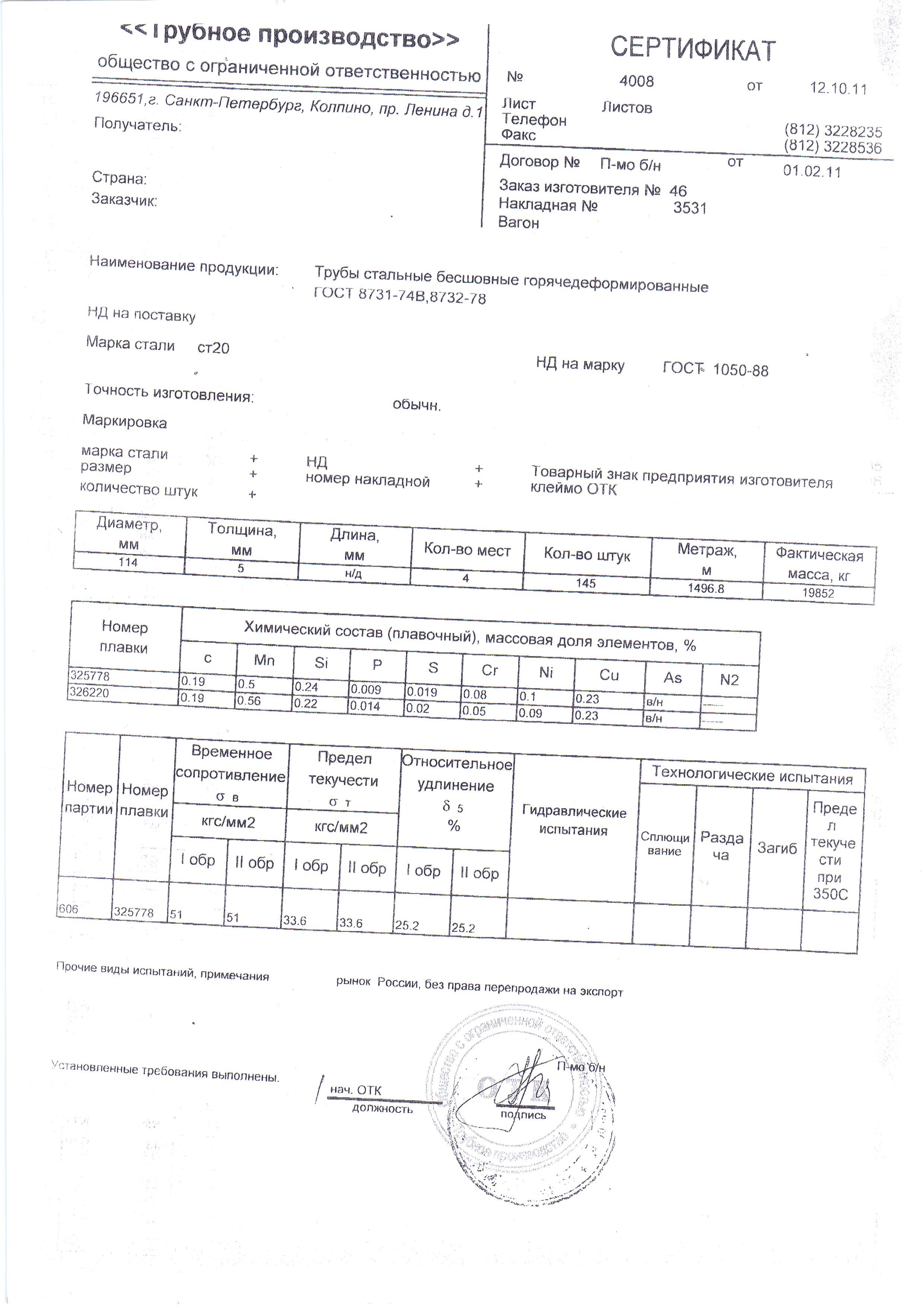 С каждой товарной позицией мы предоставляем все сертификаты и паспорта качества, а также товарно-транспортную накладную.