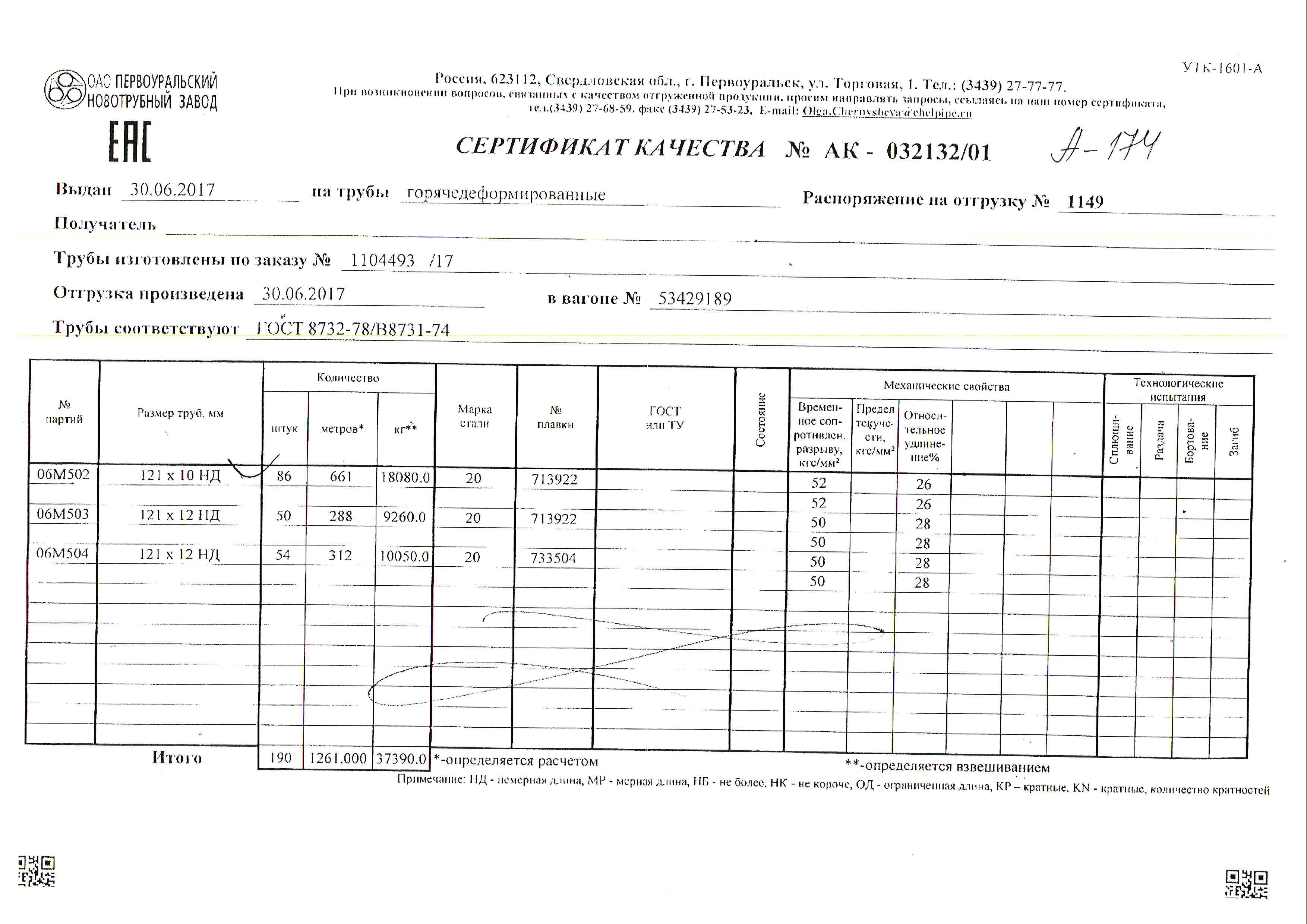 С каждой товарной позицией мы предоставляем все сертификаты и паспорта качества, а также товарно-транспортную накладную.