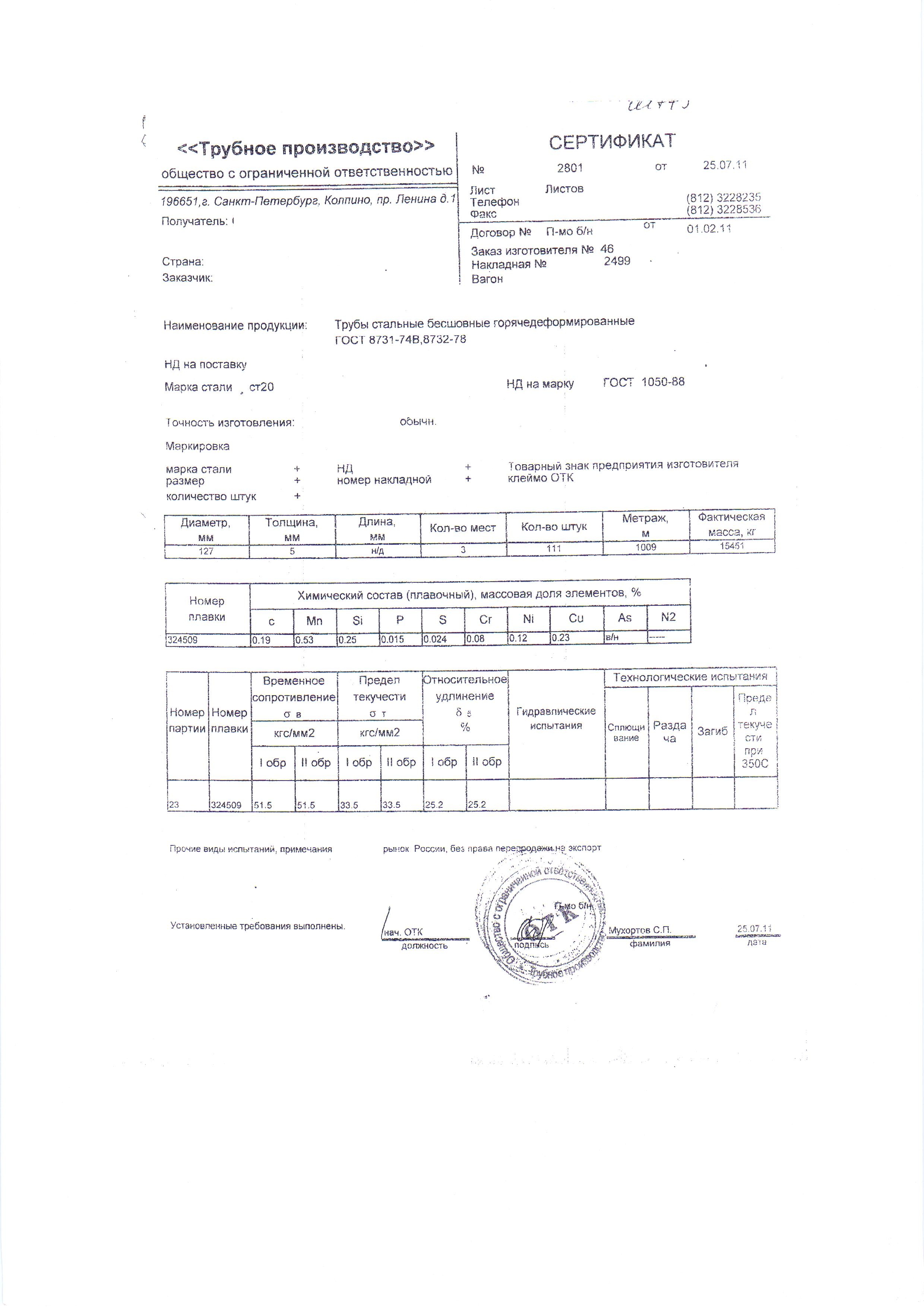С каждой товарной позицией мы предоставляем все сертификаты и паспорта качества, а также товарно-транспортную накладную.