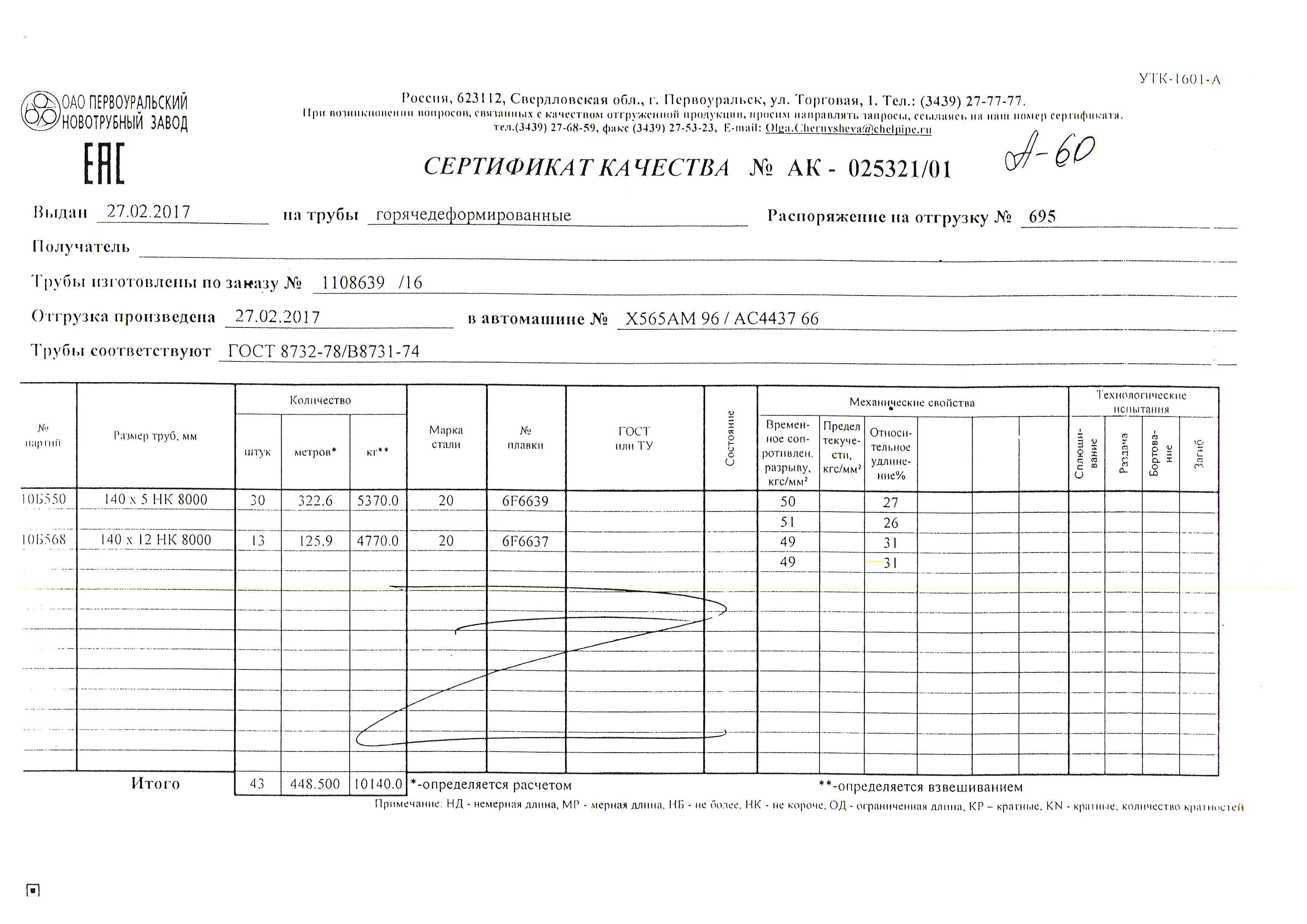 С каждой товарной позицией мы предоставляем все сертификаты и паспорта качества, а также товарно-транспортную накладную.
