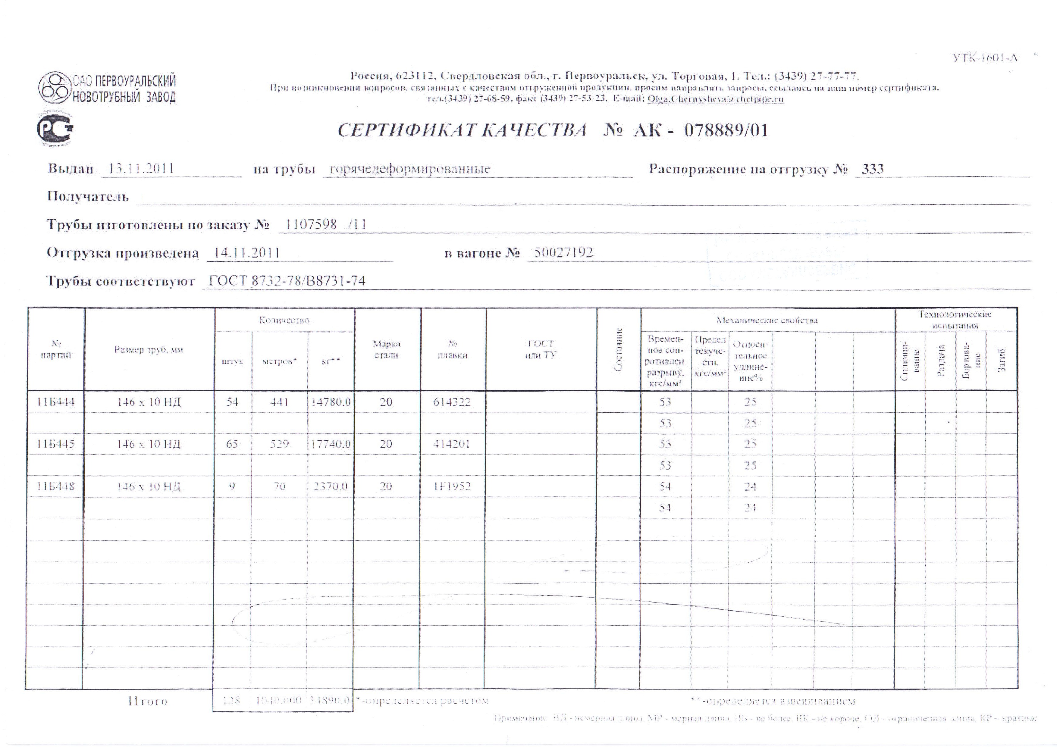 С каждой товарной позицией мы предоставляем все сертификаты и паспорта качества, а также товарно-транспортную накладную.