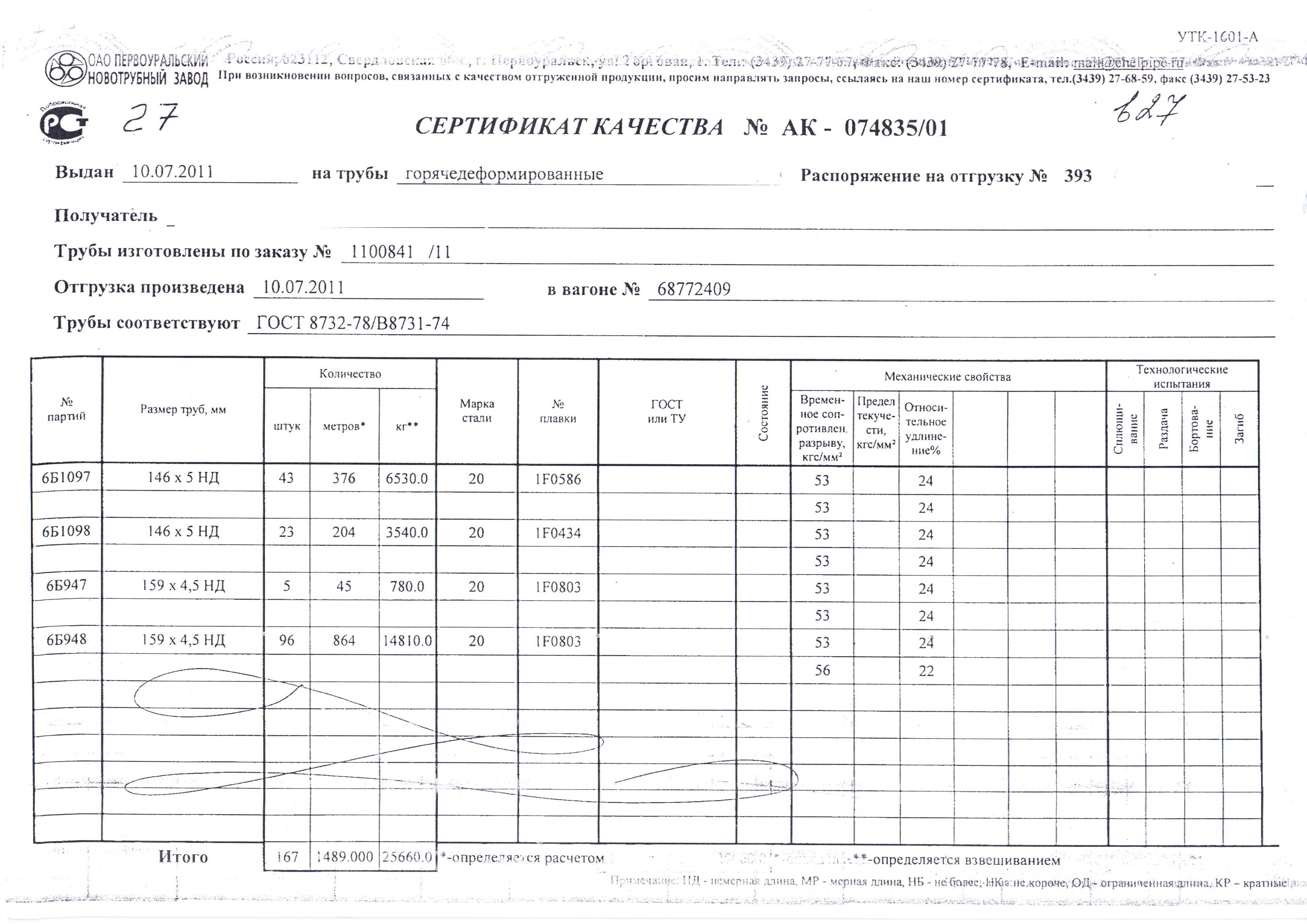 С каждой товарной позицией мы предоставляем все сертификаты и паспорта качества, а также товарно-транспортную накладную.
