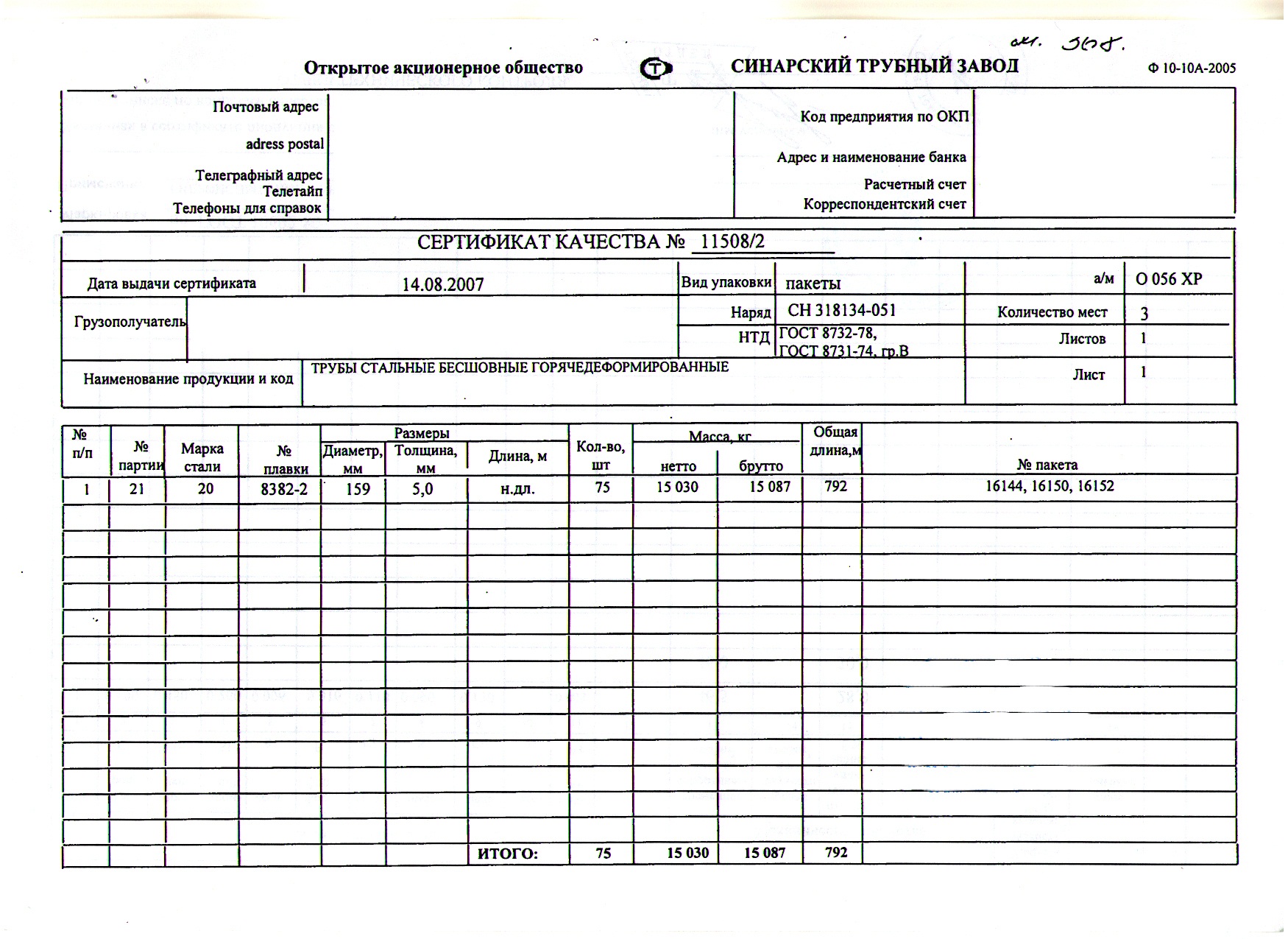 С каждой товарной позицией мы предоставляем все сертификаты и паспорта качества, а также товарно-транспортную накладную.