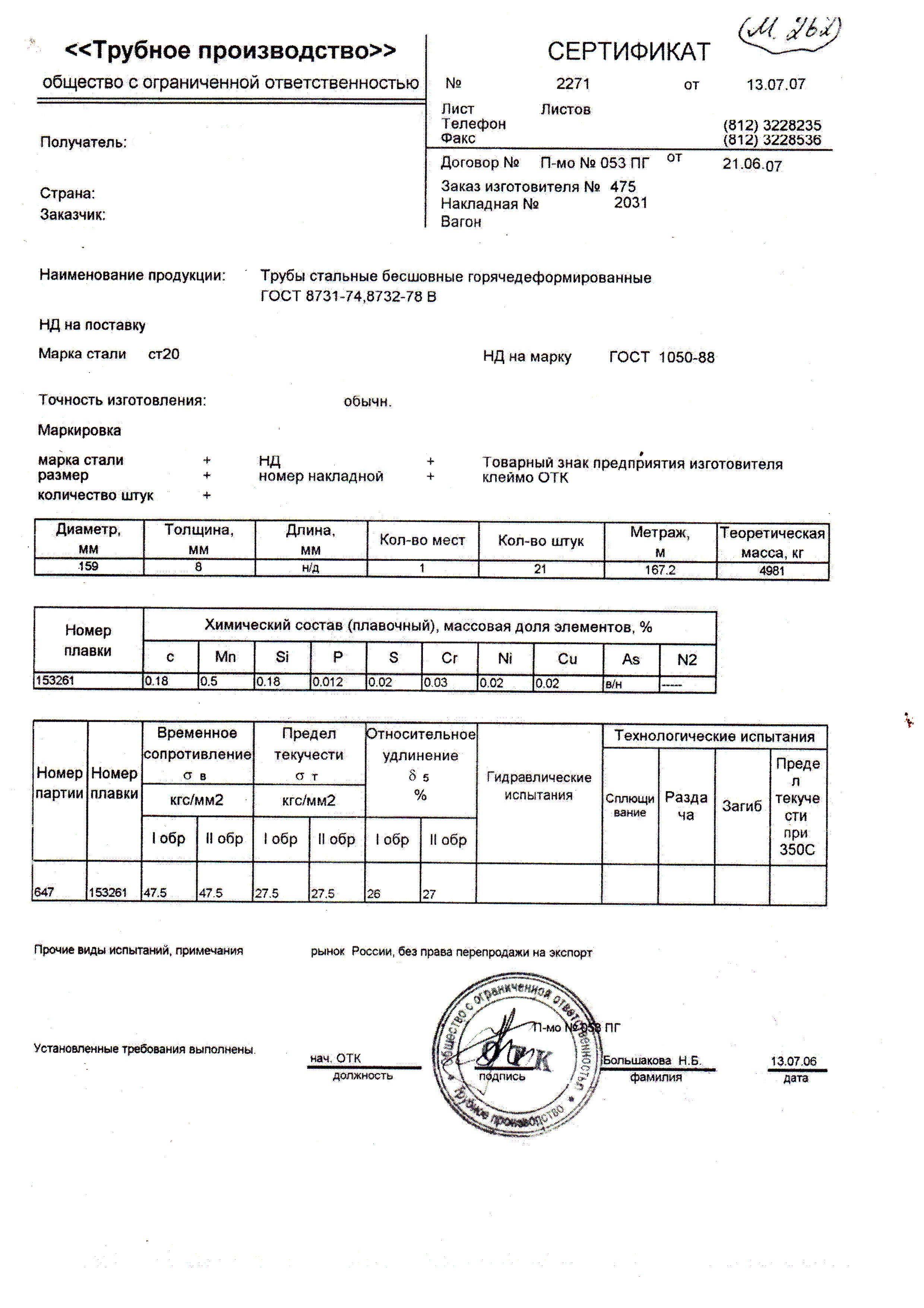 С каждой товарной позицией мы предоставляем все сертификаты и паспорта качества, а также товарно-транспортную накладную.