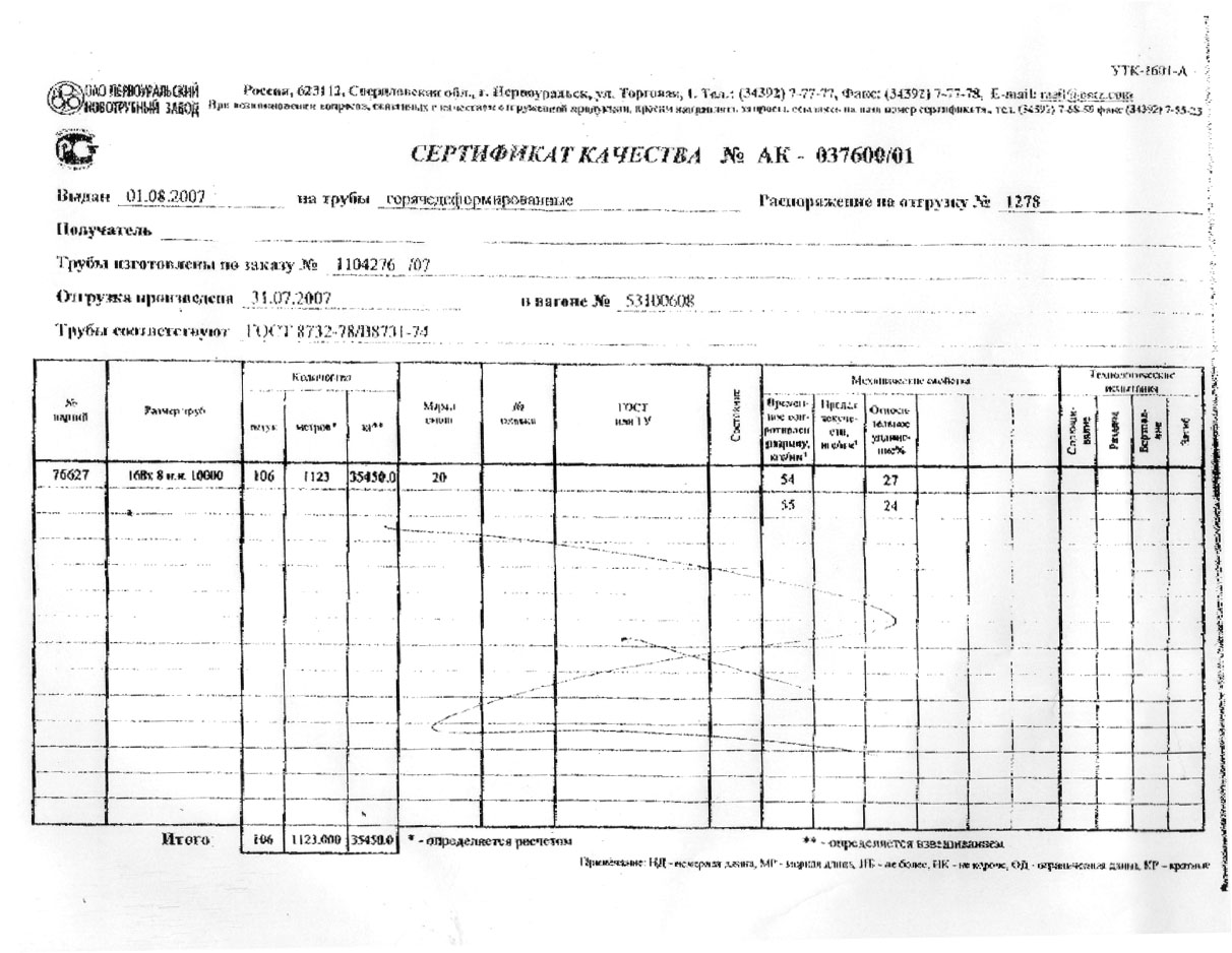 С каждой товарной позицией мы предоставляем все сертификаты и паспорта качества, а также товарно-транспортную накладную.