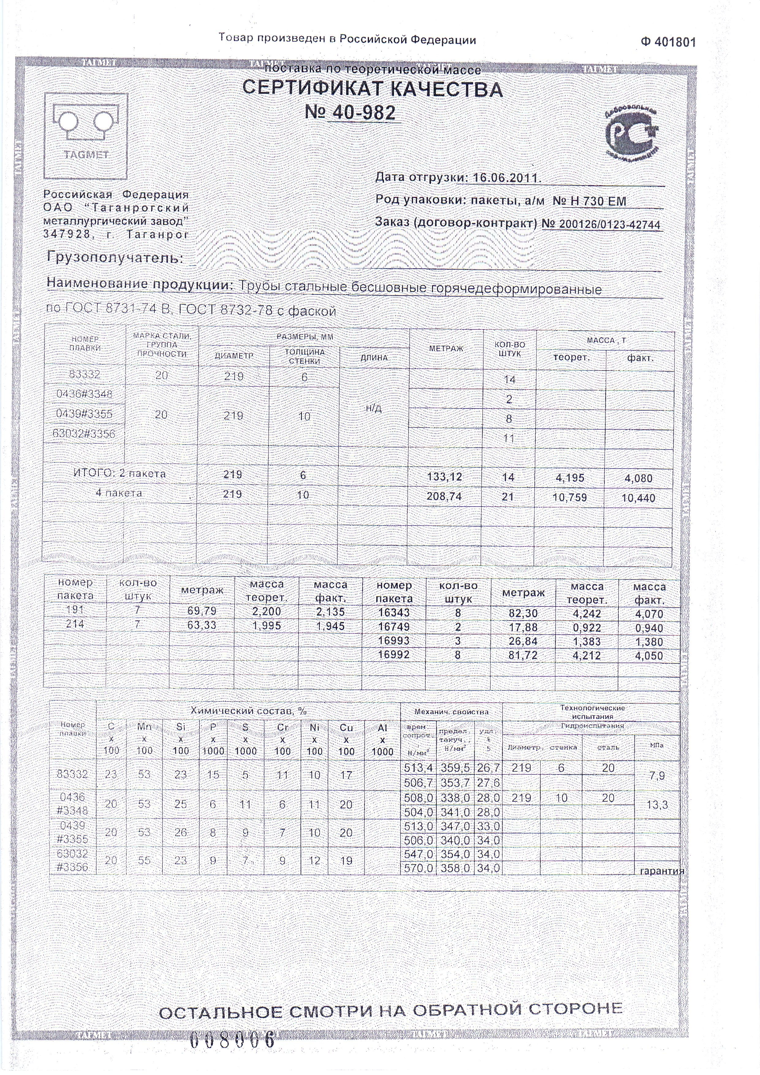 С каждой товарной позицией мы предоставляем все сертификаты и паспорта качества, а также товарно-транспортную накладную.
