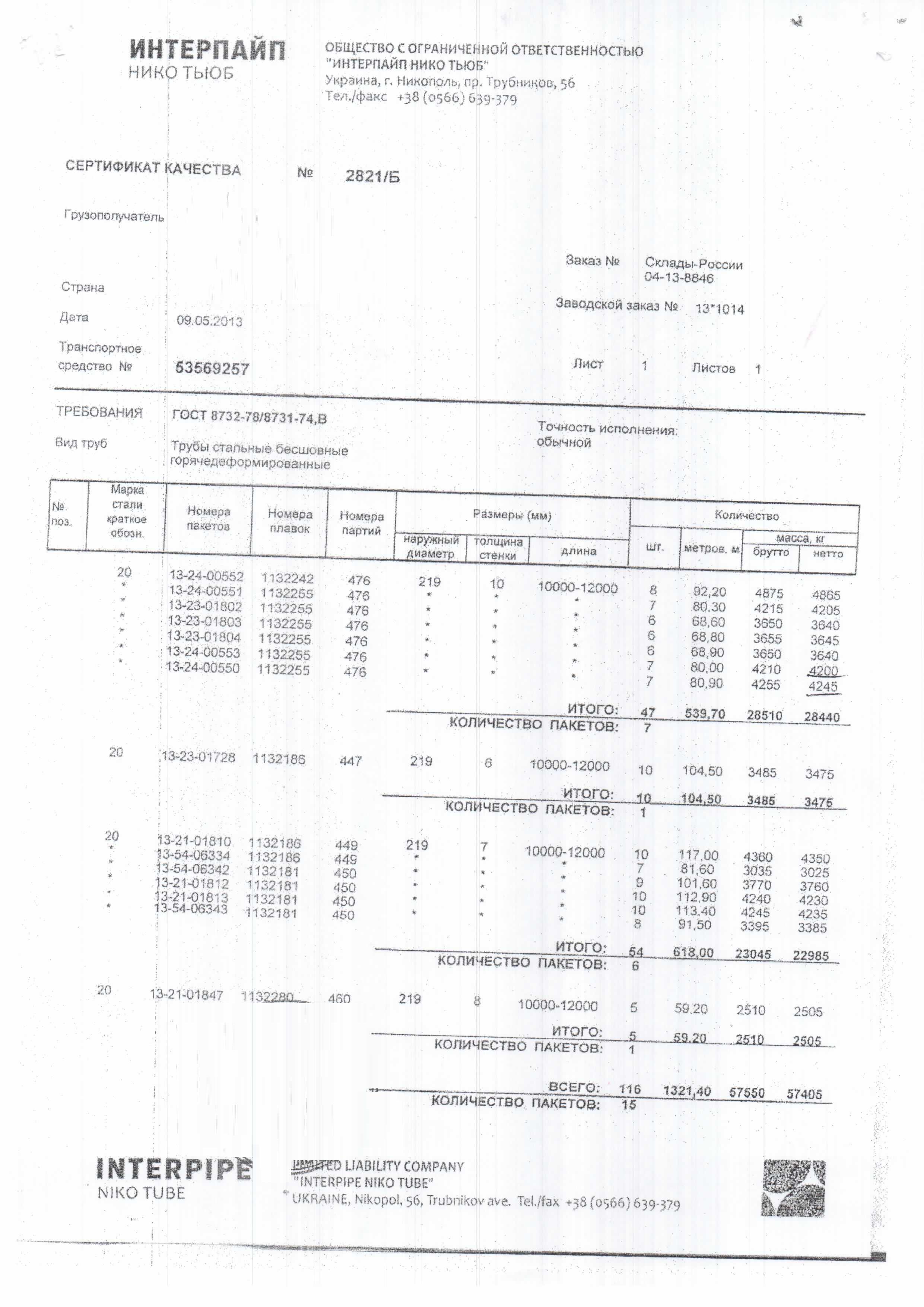 С каждой товарной позицией мы предоставляем все сертификаты и паспорта качества, а также товарно-транспортную накладную.