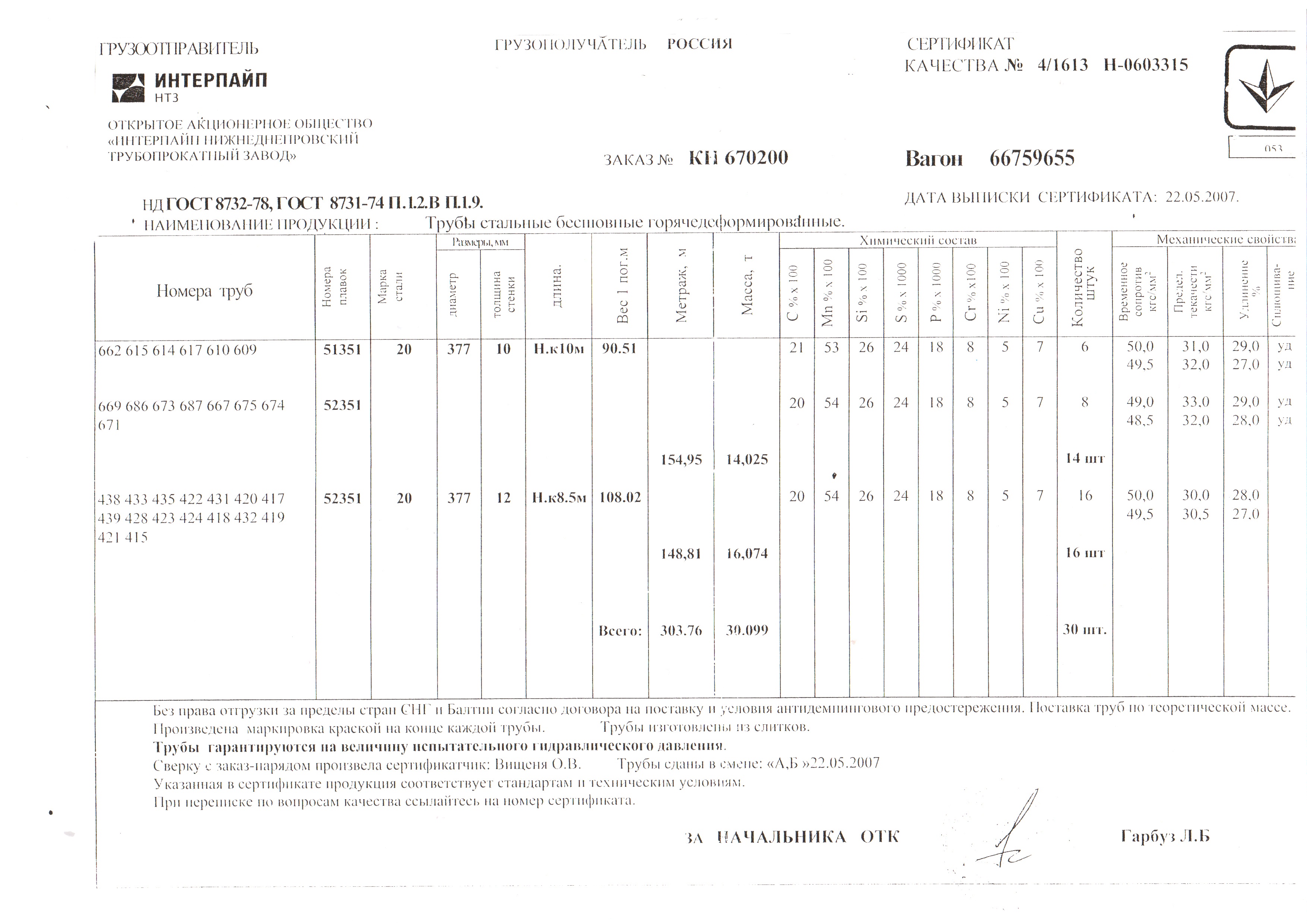 С каждой товарной позицией мы предоставляем все сертификаты и паспорта качества, а также товарно-транспортную накладную.