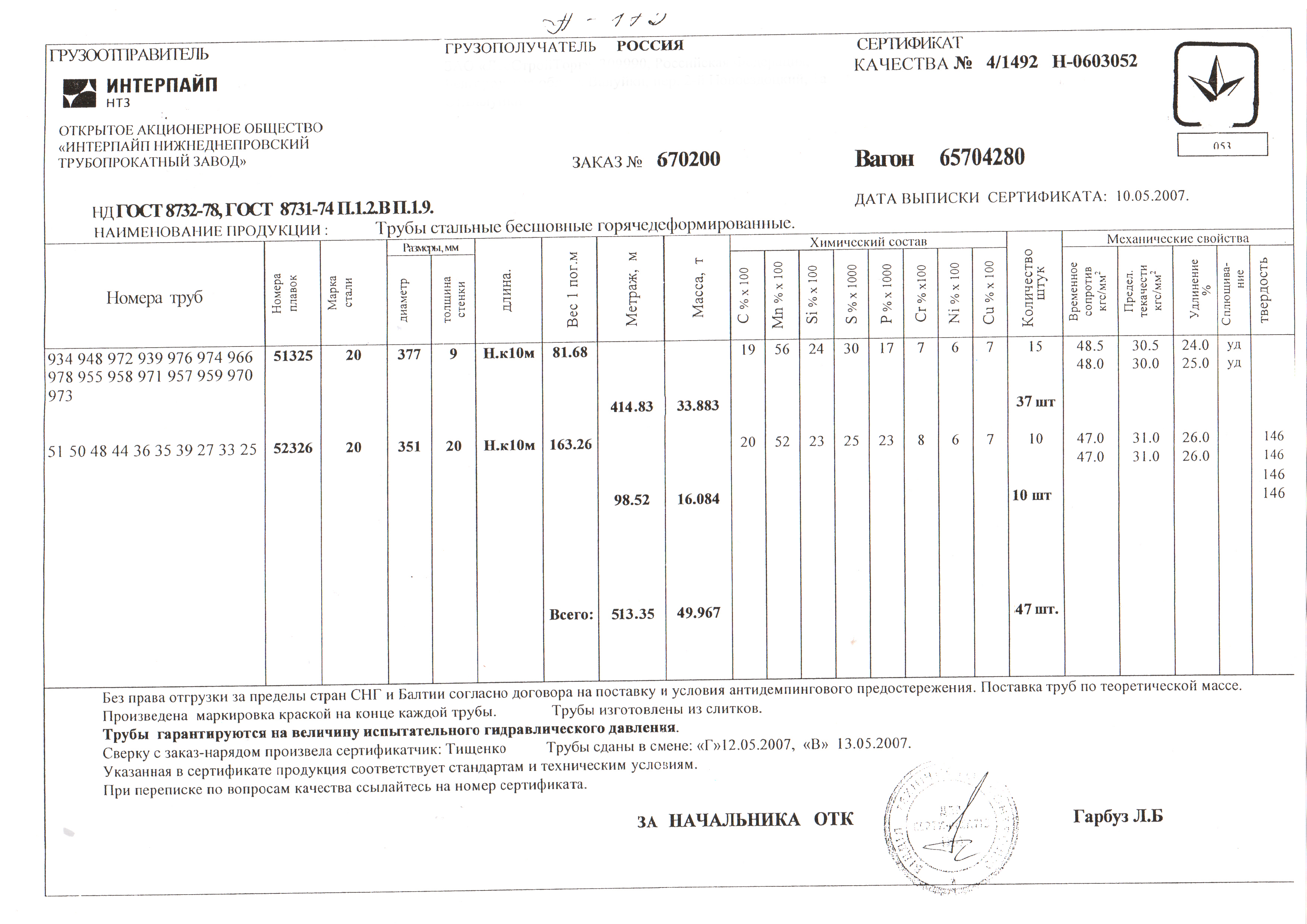С каждой товарной позицией мы предоставляем все сертификаты и паспорта качества, а также товарно-транспортную накладную.