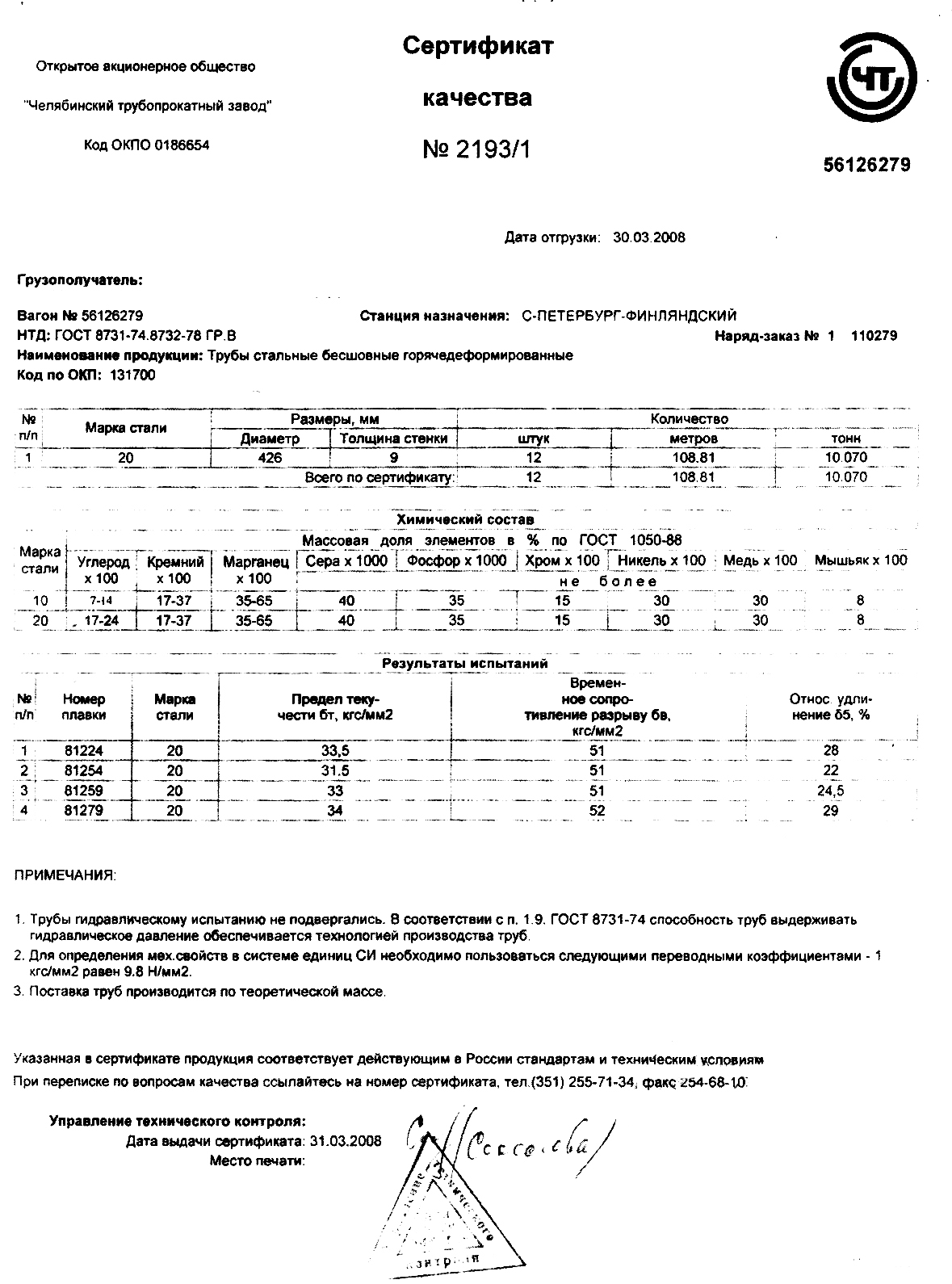 С каждой товарной позицией мы предоставляем все сертификаты и паспорта качества, а также товарно-транспортную накладную.