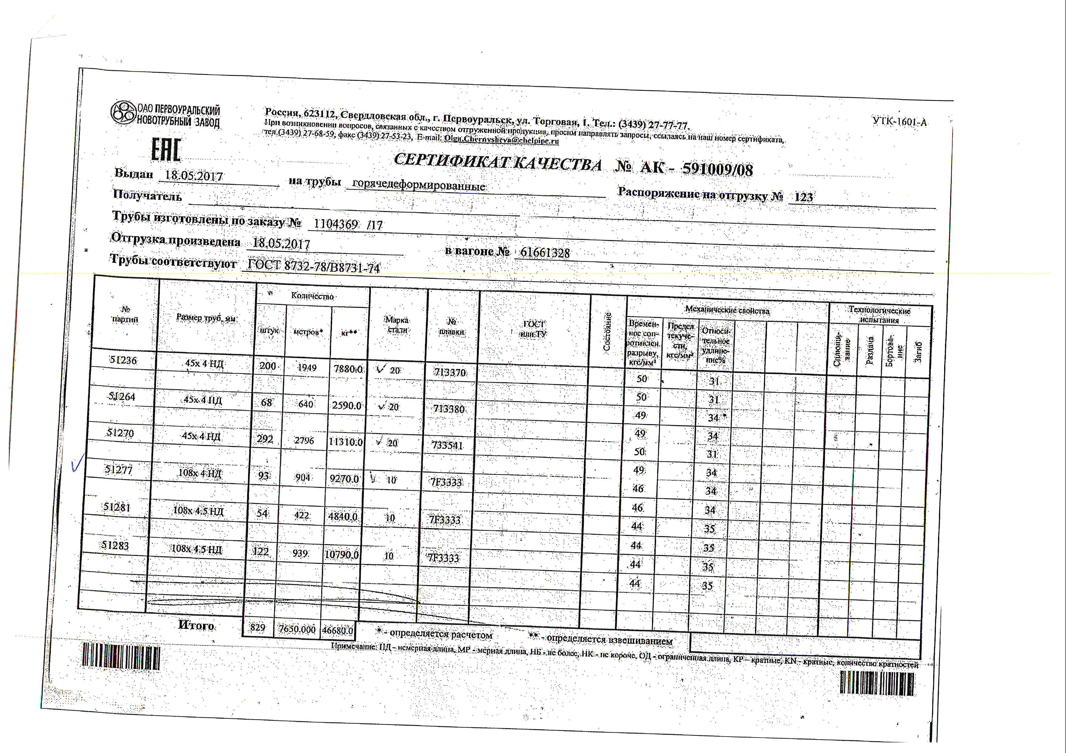 С каждой товарной позицией мы предоставляем все сертификаты и паспорта качества, а также товарно-транспортную накладную.