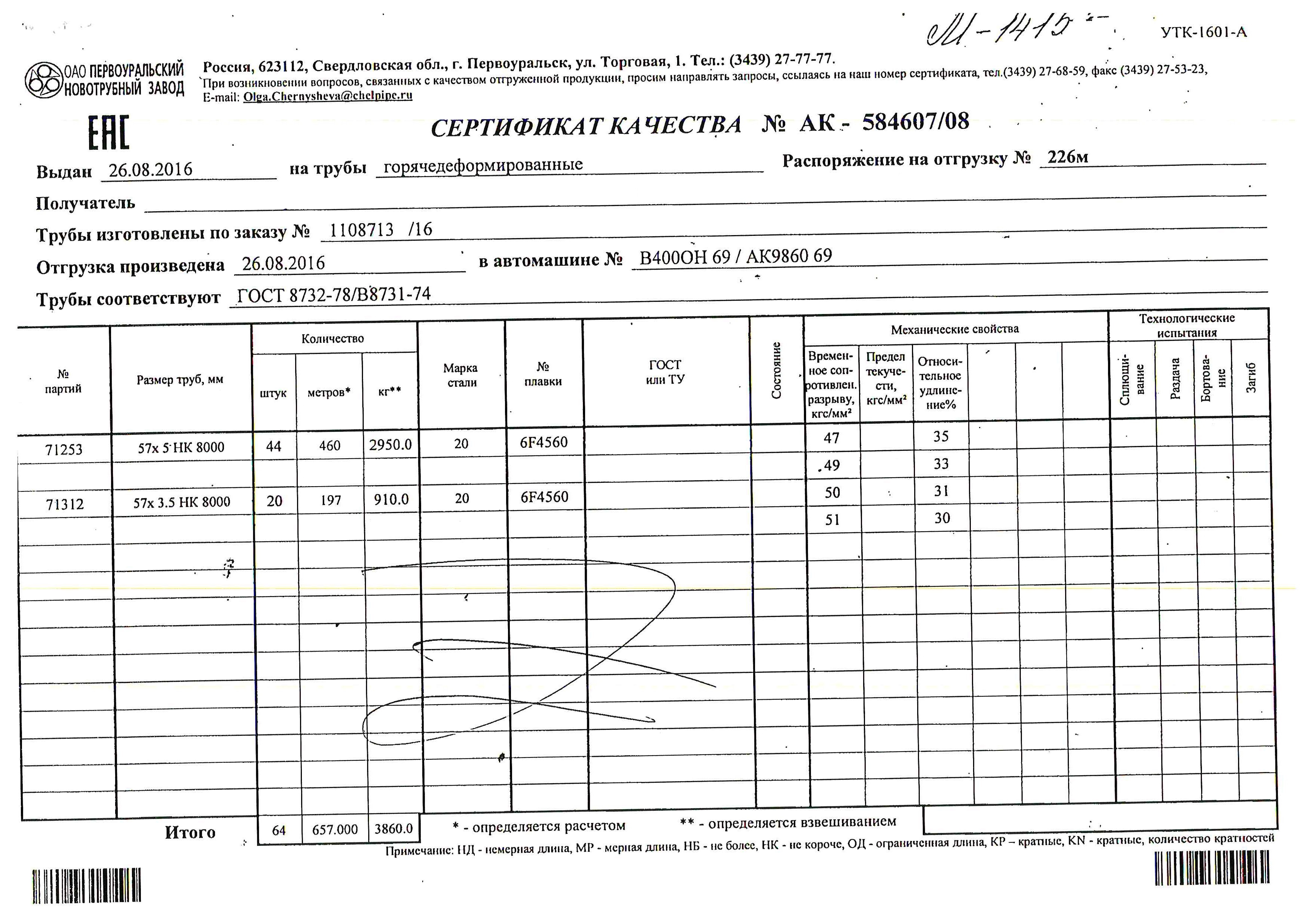 С каждой товарной позицией мы предоставляем все сертификаты и паспорта качества, а также товарно-транспортную накладную.
