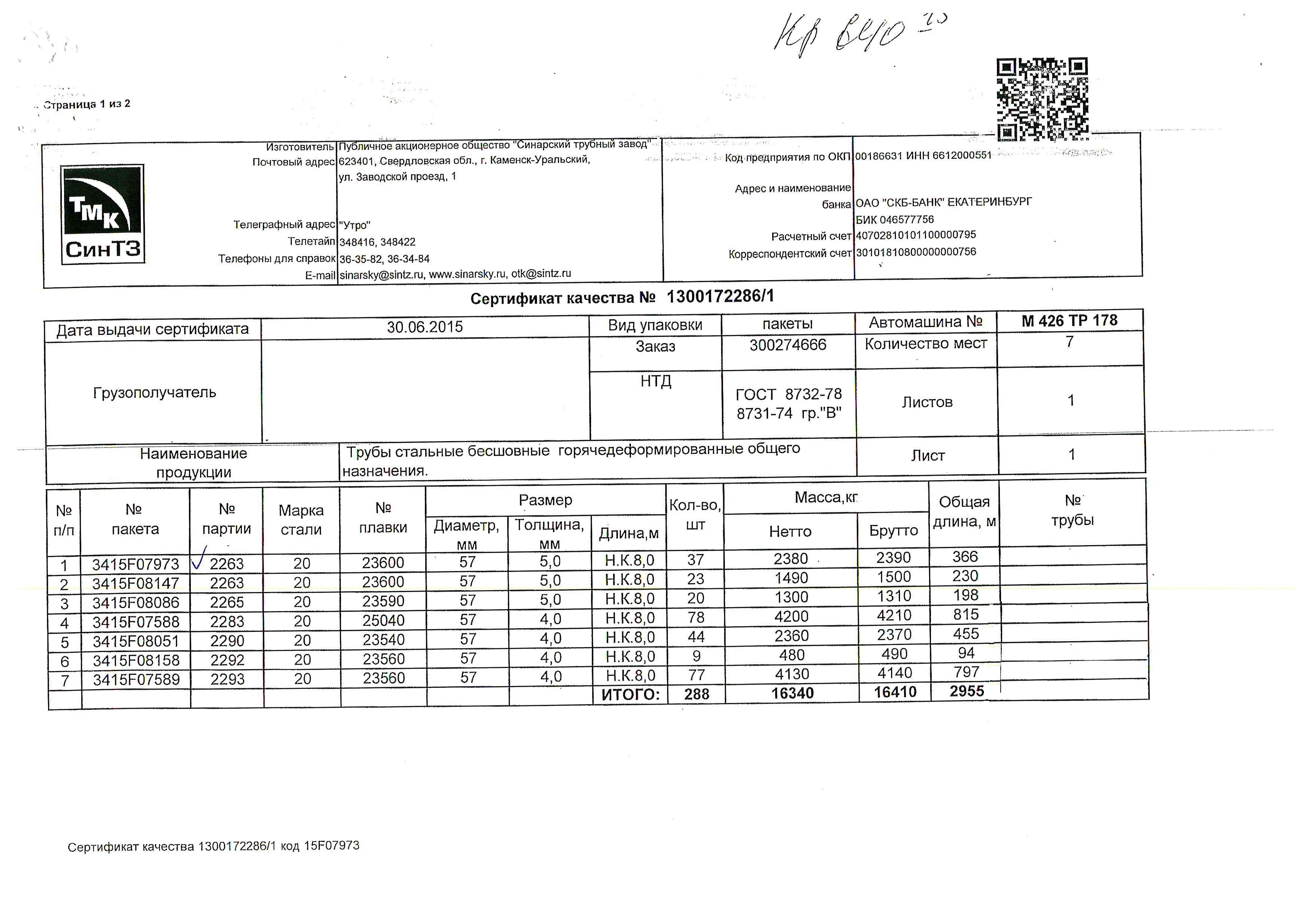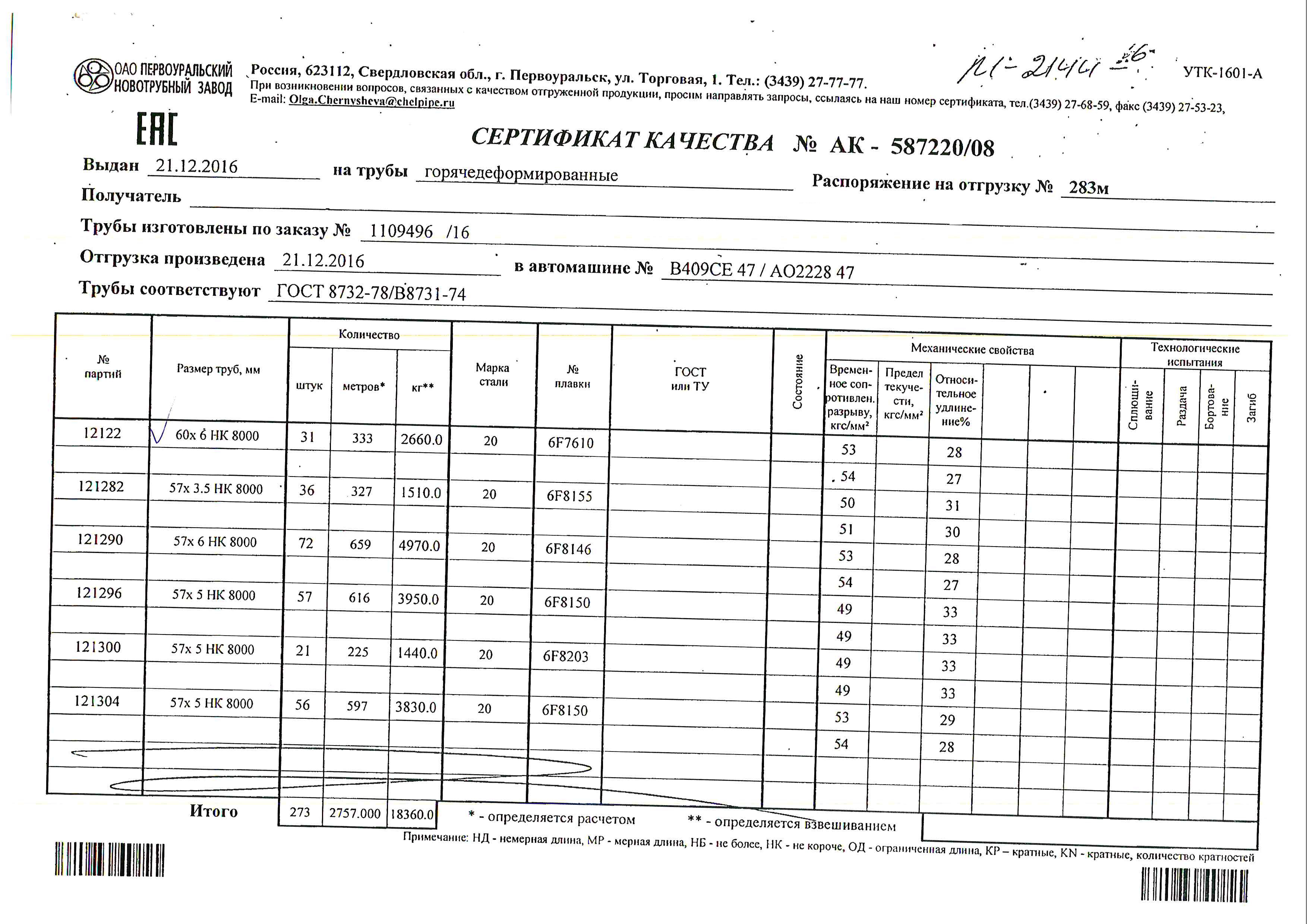 С каждой товарной позицией мы предоставляем все сертификаты и паспорта качества, а также товарно-транспортную накладную.