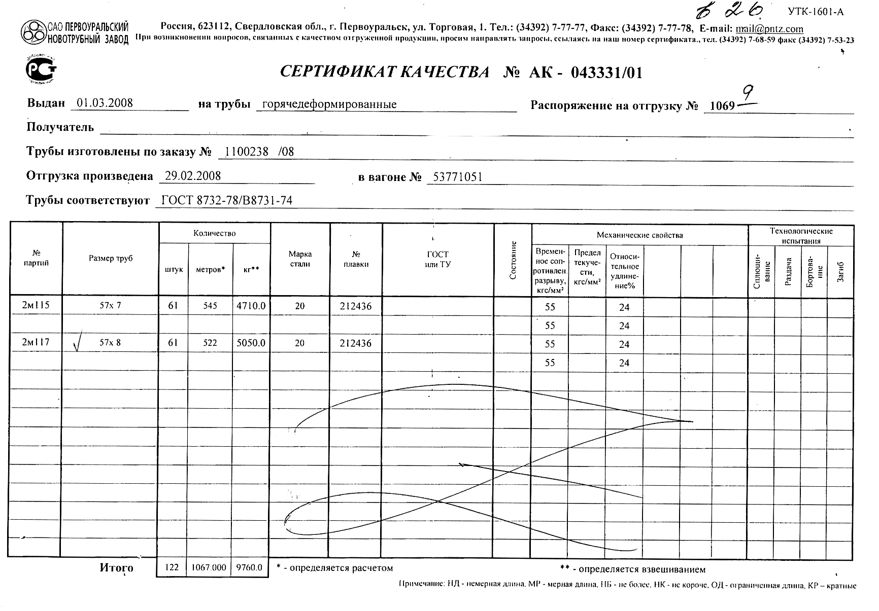 С каждой товарной позицией мы предоставляем все сертификаты и паспорта качества, а также товарно-транспортную накладную.