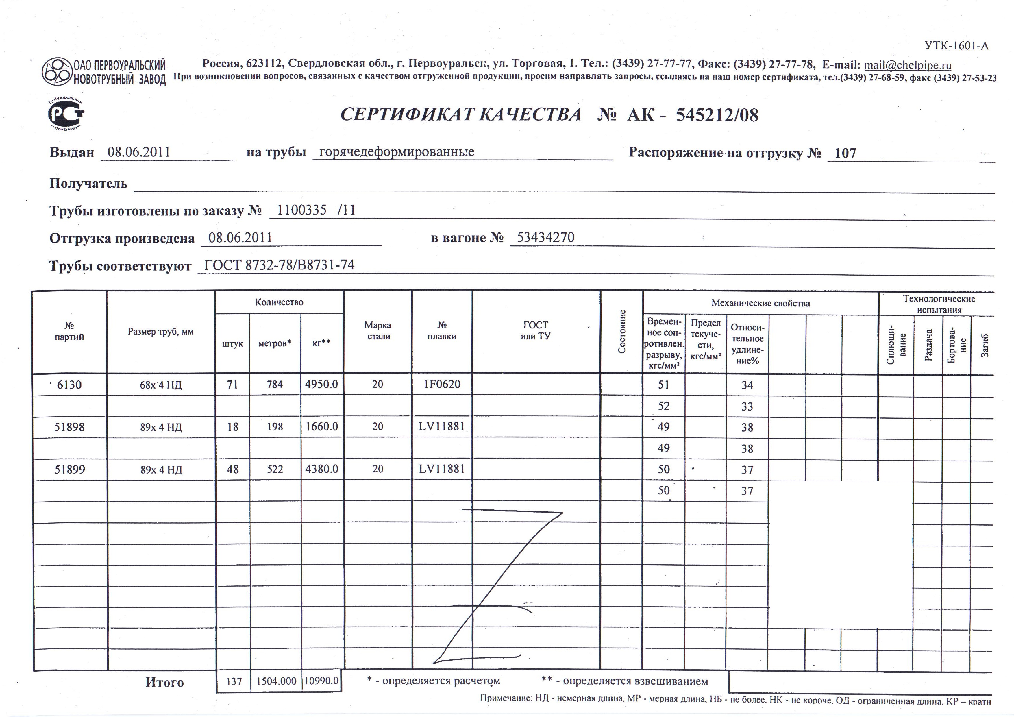 С каждой товарной позицией мы предоставляем все сертификаты и паспорта качества, а также товарно-транспортную накладную.