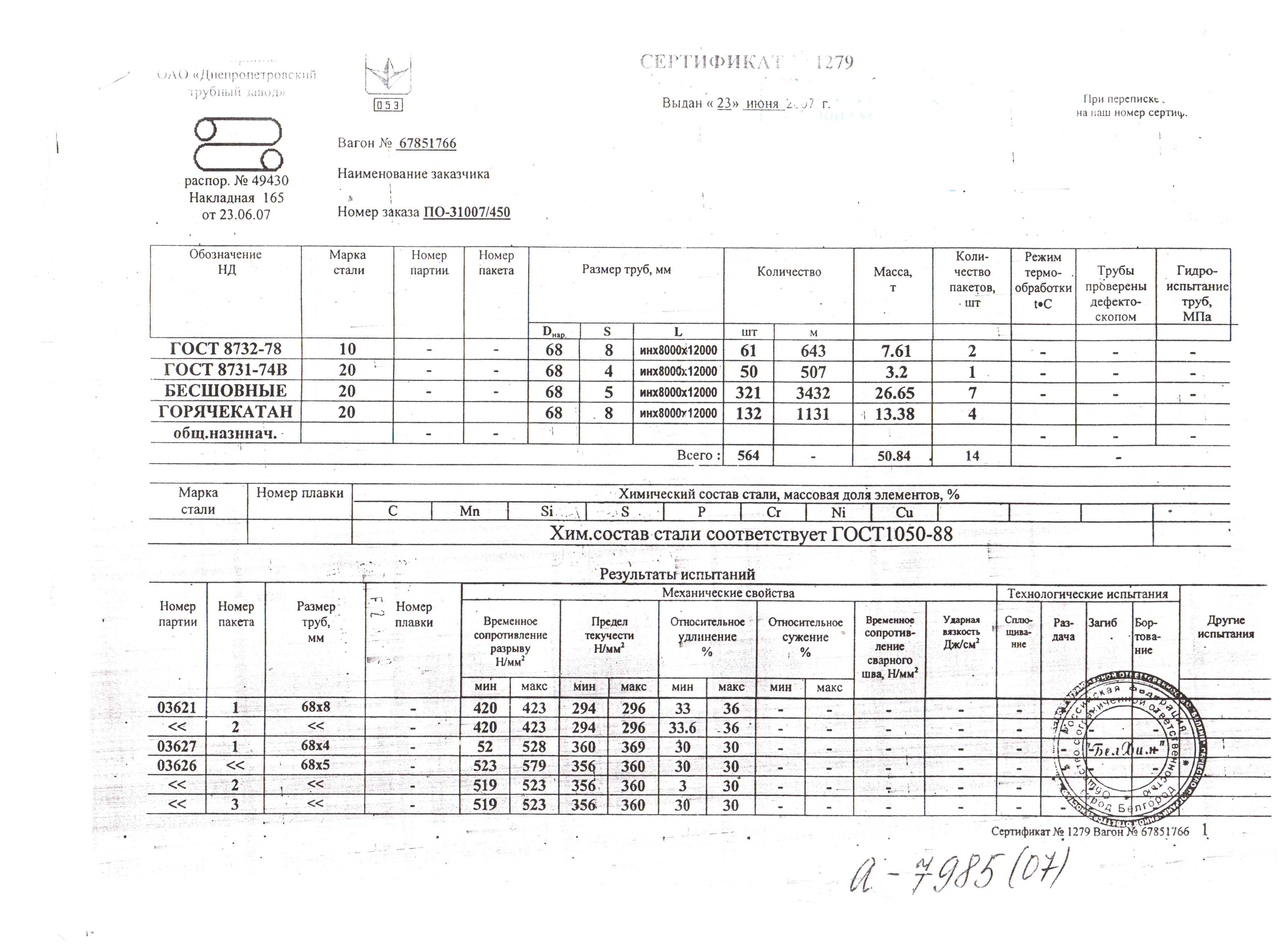 С каждой товарной позицией мы предоставляем все сертификаты и паспорта качества, а также товарно-транспортную накладную.
