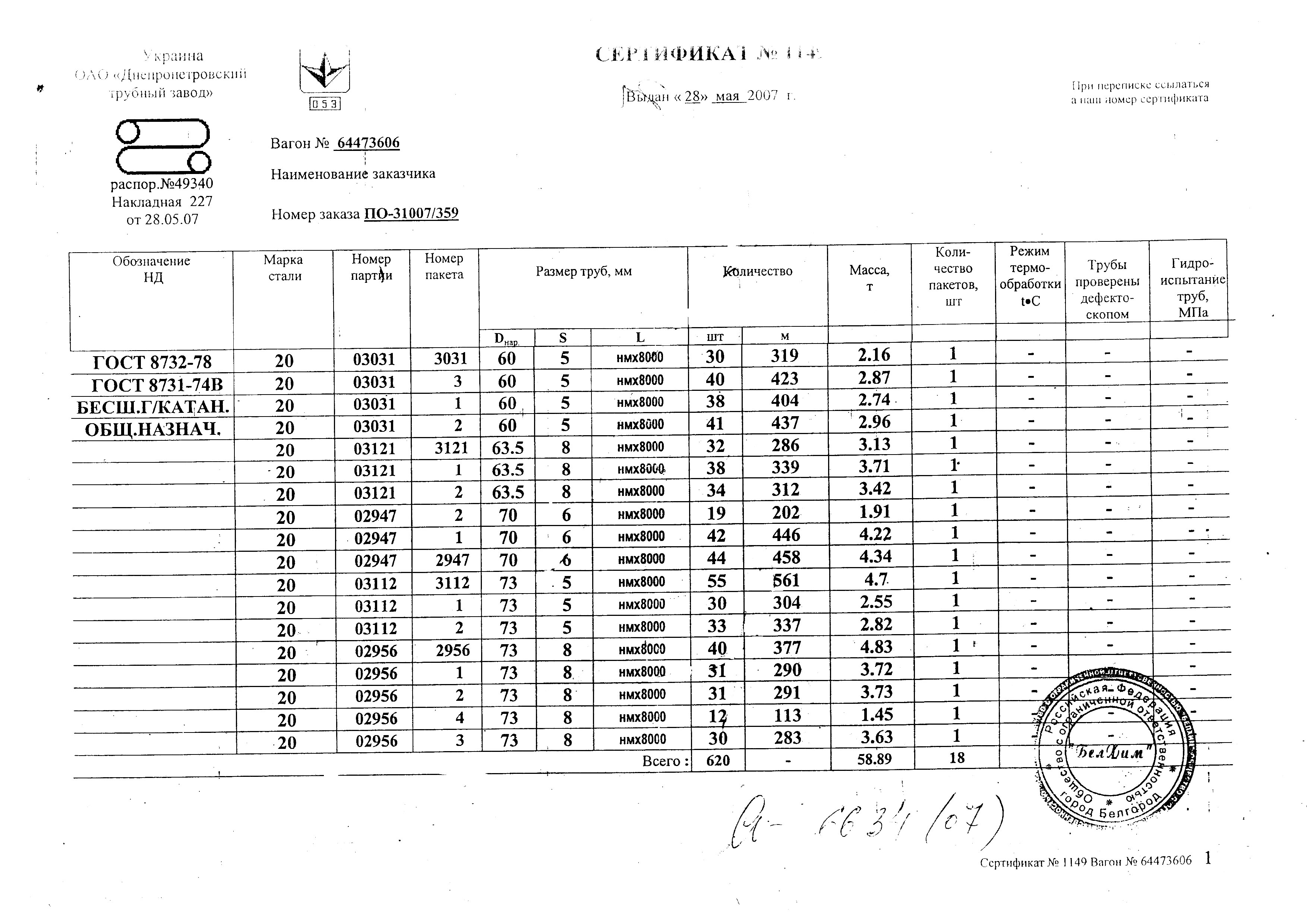 С каждой товарной позицией мы предоставляем все сертификаты и паспорта качества, а также товарно-транспортную накладную.
