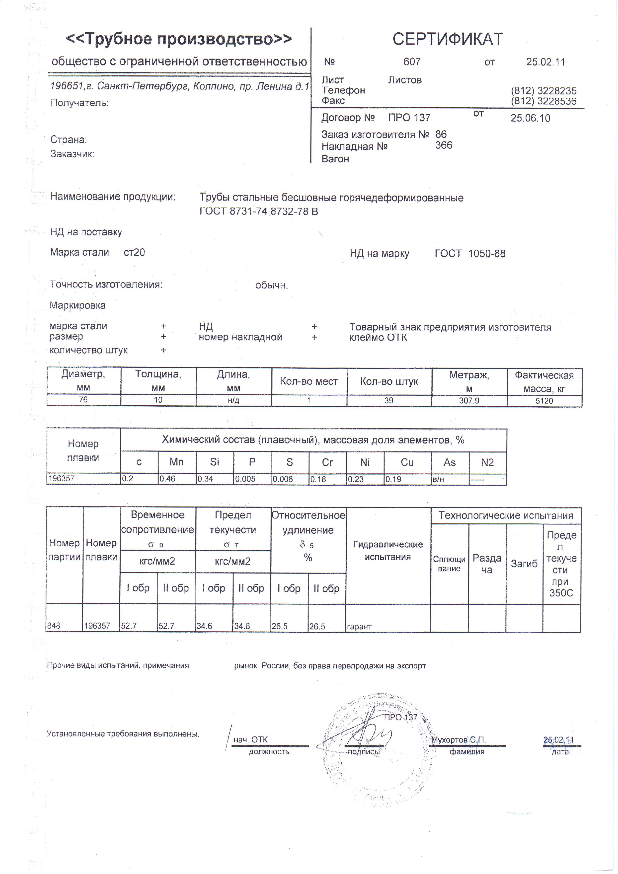 С каждой товарной позицией мы предоставляем все сертификаты и паспорта качества, а также товарно-транспортную накладную.
