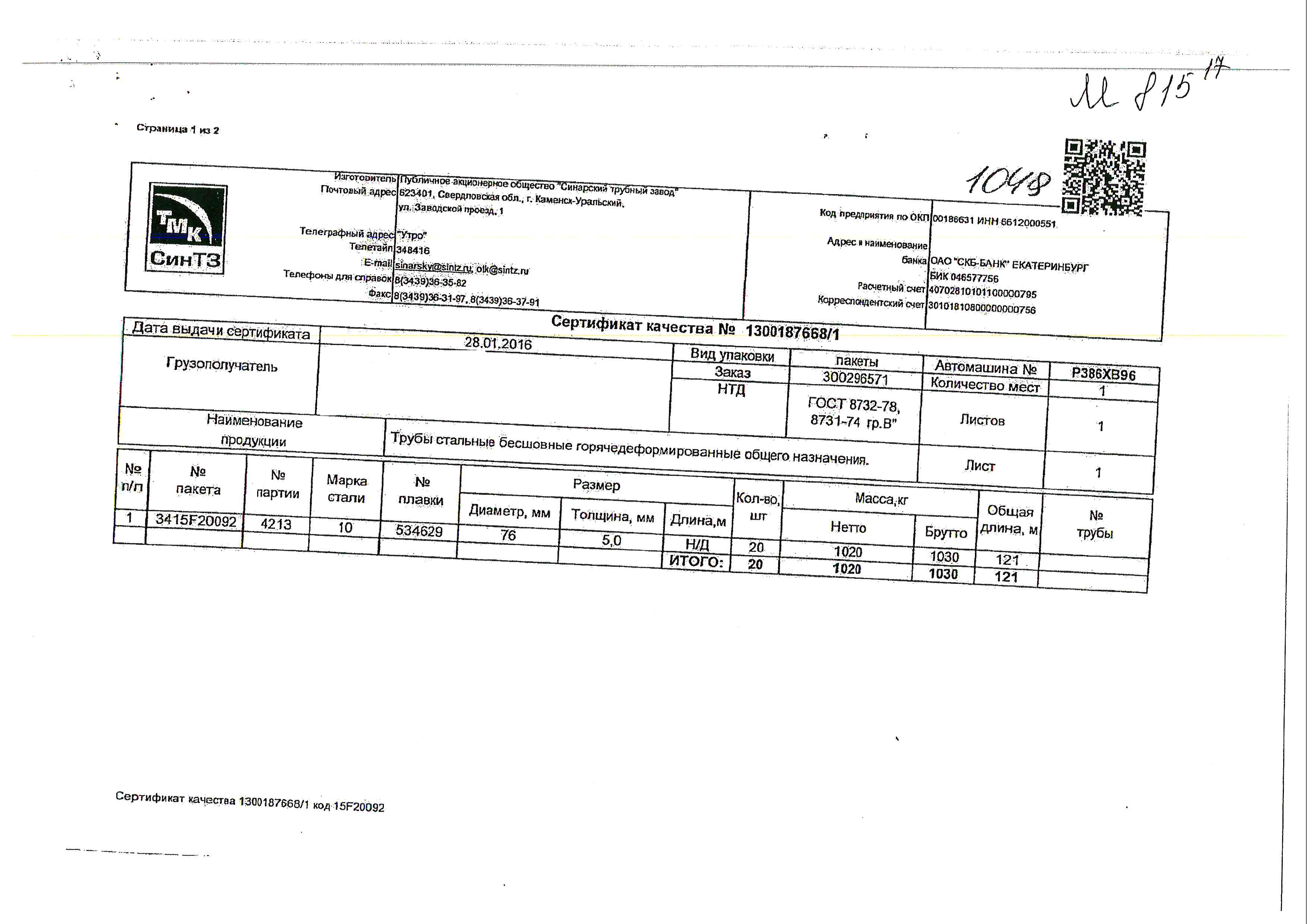 С каждой товарной позицией мы предоставляем все сертификаты и паспорта качества, а также товарно-транспортную накладную.