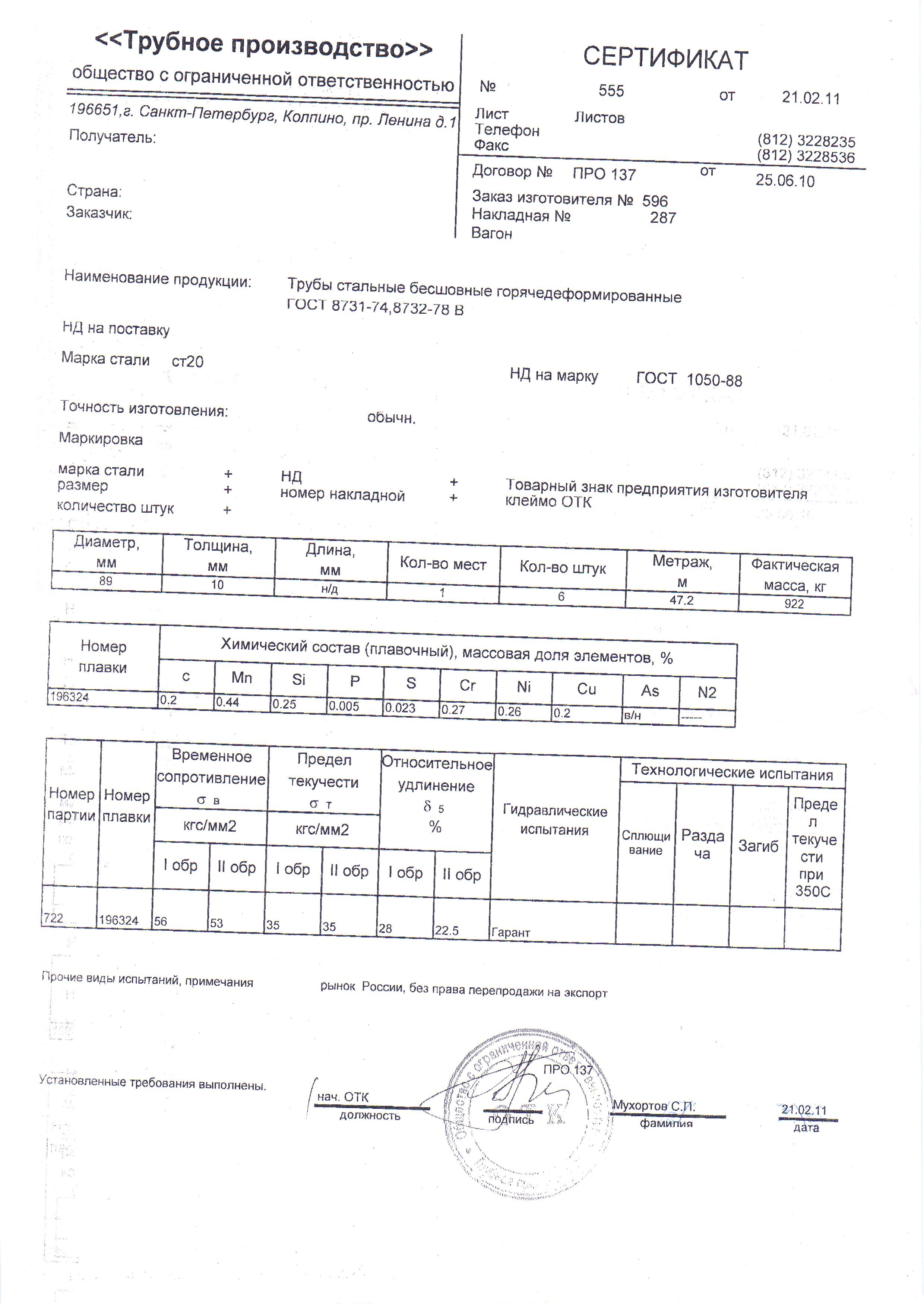 С каждой товарной позицией мы предоставляем все сертификаты и паспорта качества, а также товарно-транспортную накладную.