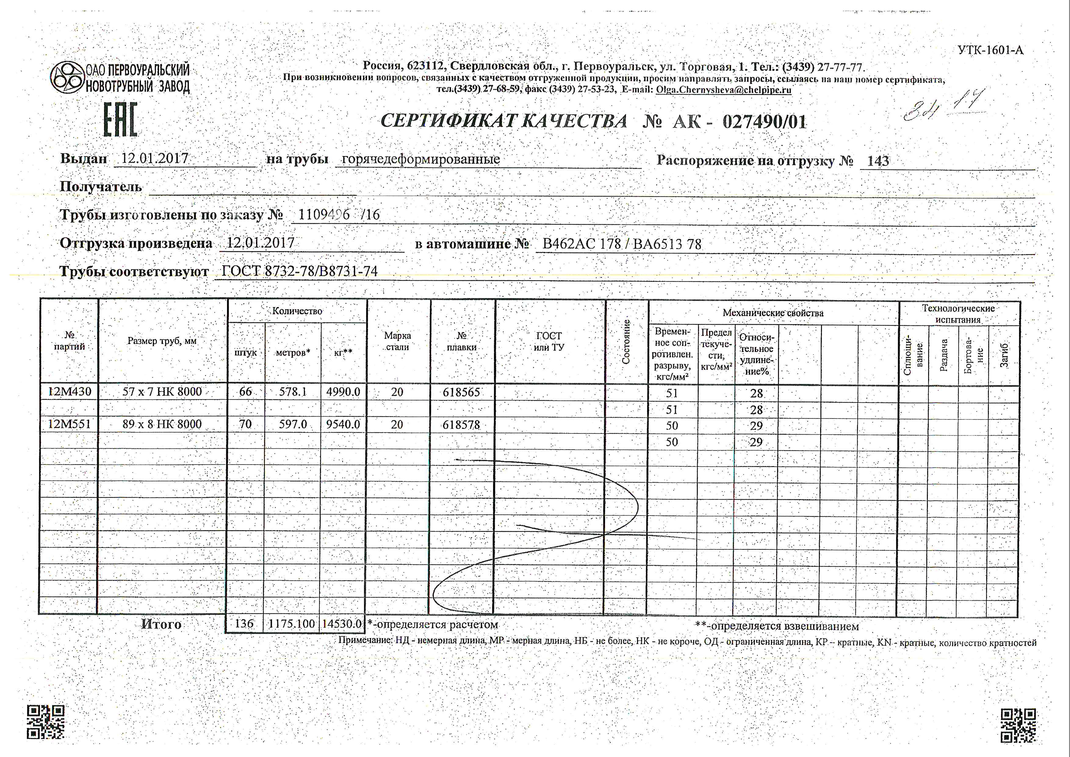 С каждой товарной позицией мы предоставляем все сертификаты и паспорта качества, а также товарно-транспортную накладную.