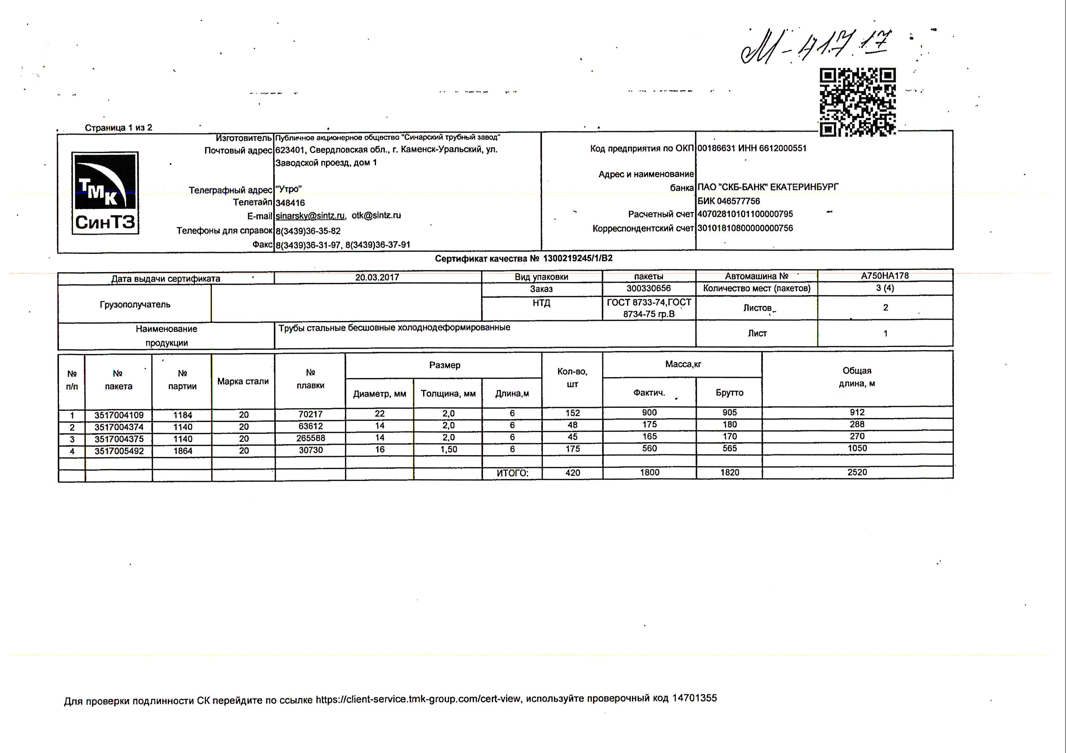 С каждой товарной позицией мы предоставляем все сертификаты и паспорта качества, а также товарно-транспортную накладную.