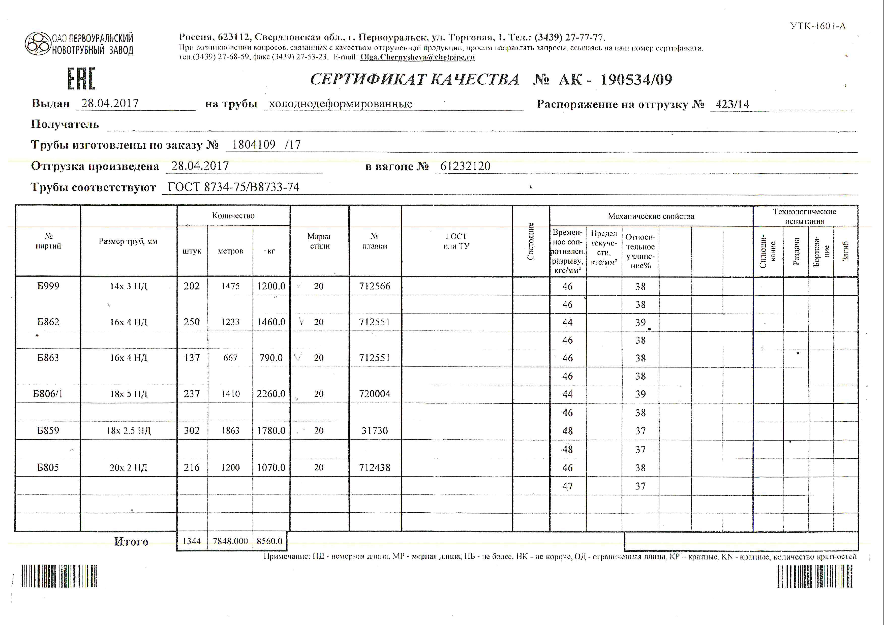 С каждой товарной позицией мы предоставляем все сертификаты и паспорта качества, а также товарно-транспортную накладную.