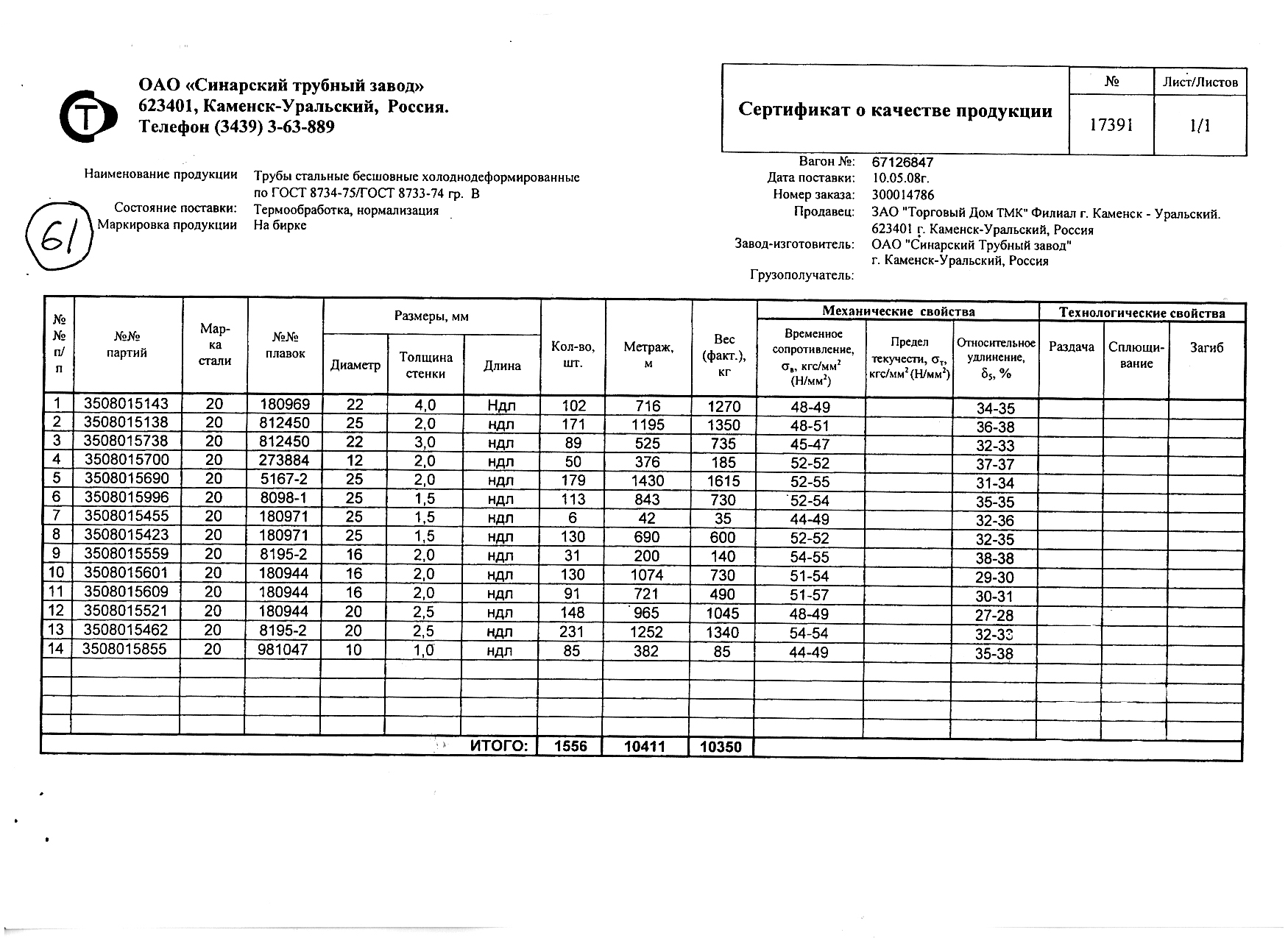 С каждой товарной позицией мы предоставляем все сертификаты и паспорта качества, а также товарно-транспортную накладную.