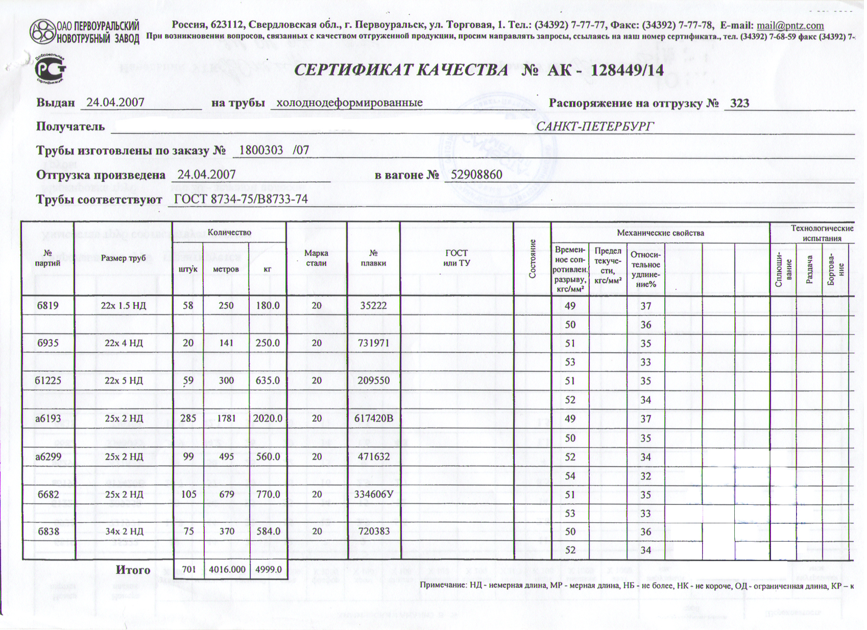 С каждой товарной позицией мы предоставляем все сертификаты и паспорта качества, а также товарно-транспортную накладную.