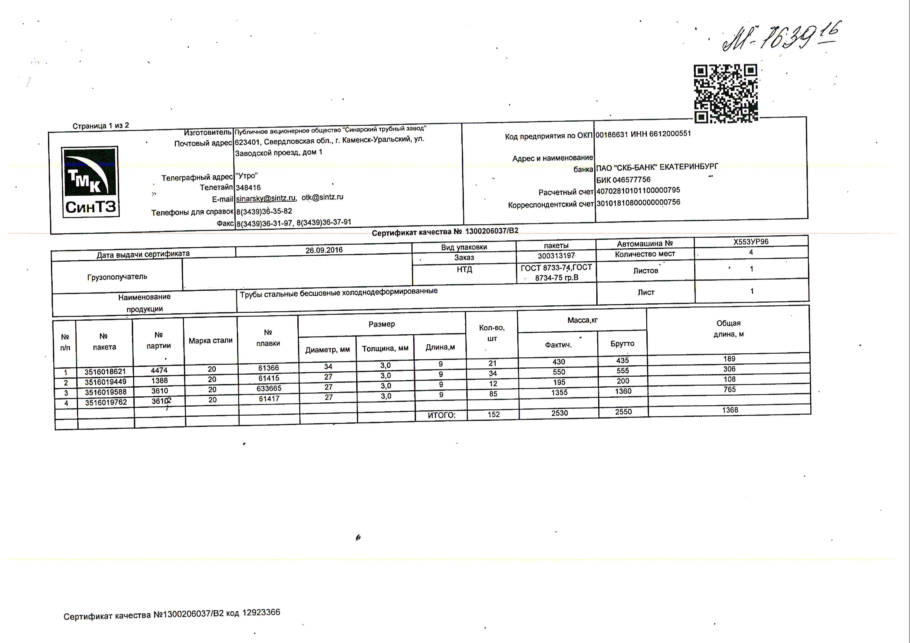 С каждой товарной позицией мы предоставляем все сертификаты и паспорта качества, а также товарно-транспортную накладную.