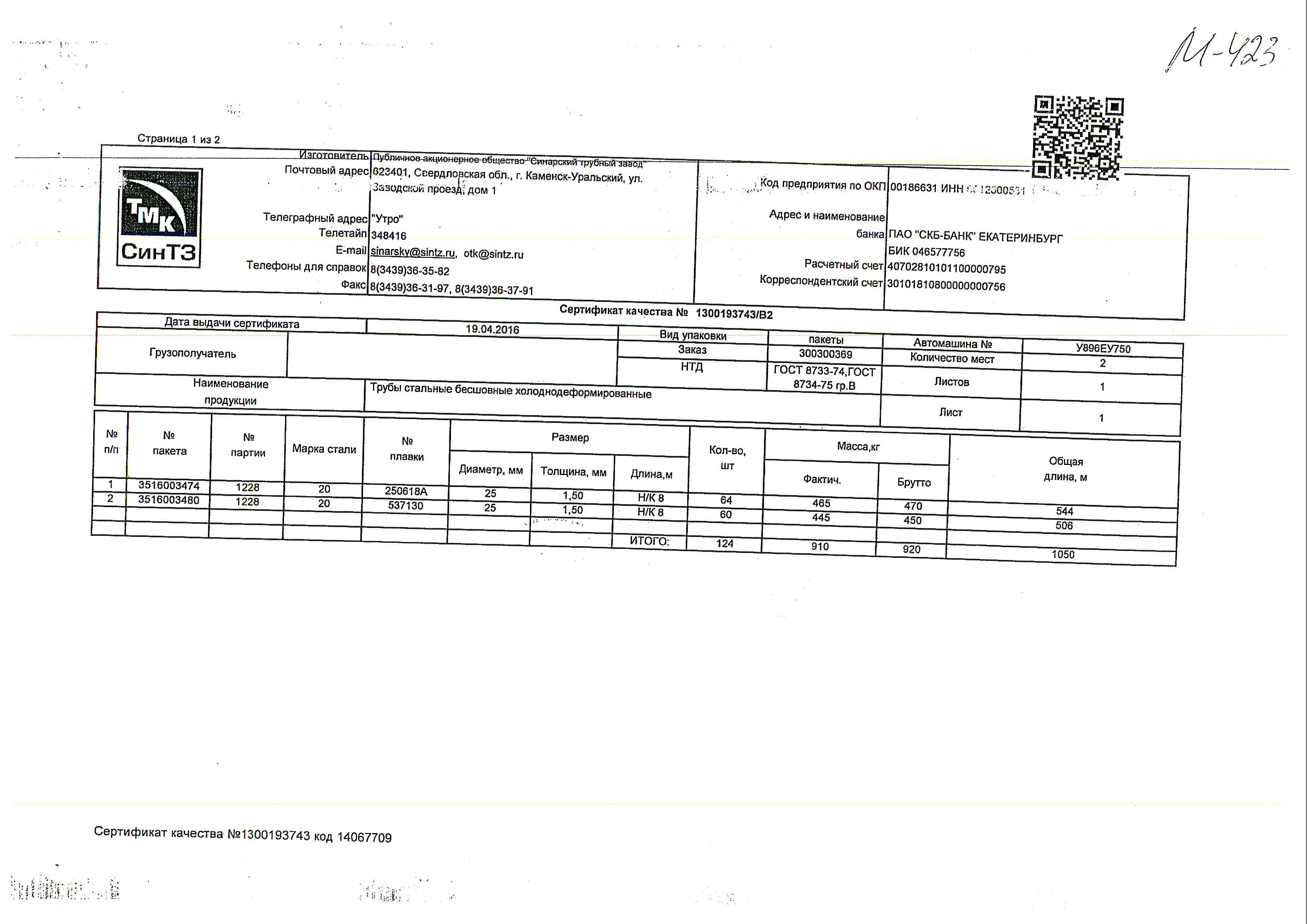 С каждой товарной позицией мы предоставляем все сертификаты и паспорта качества, а также товарно-транспортную накладную.