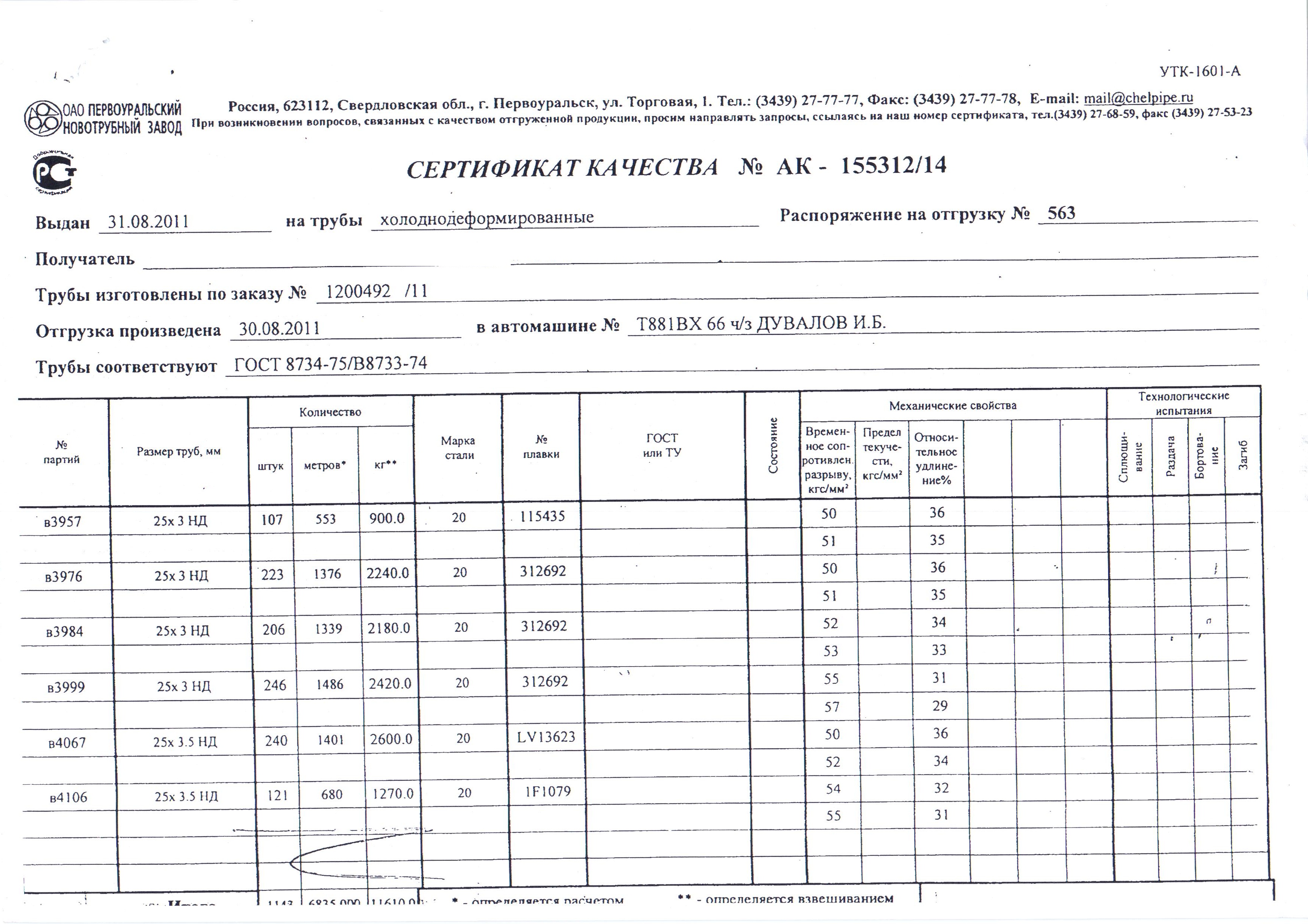 С каждой товарной позицией мы предоставляем все сертификаты и паспорта качества, а также товарно-транспортную накладную.