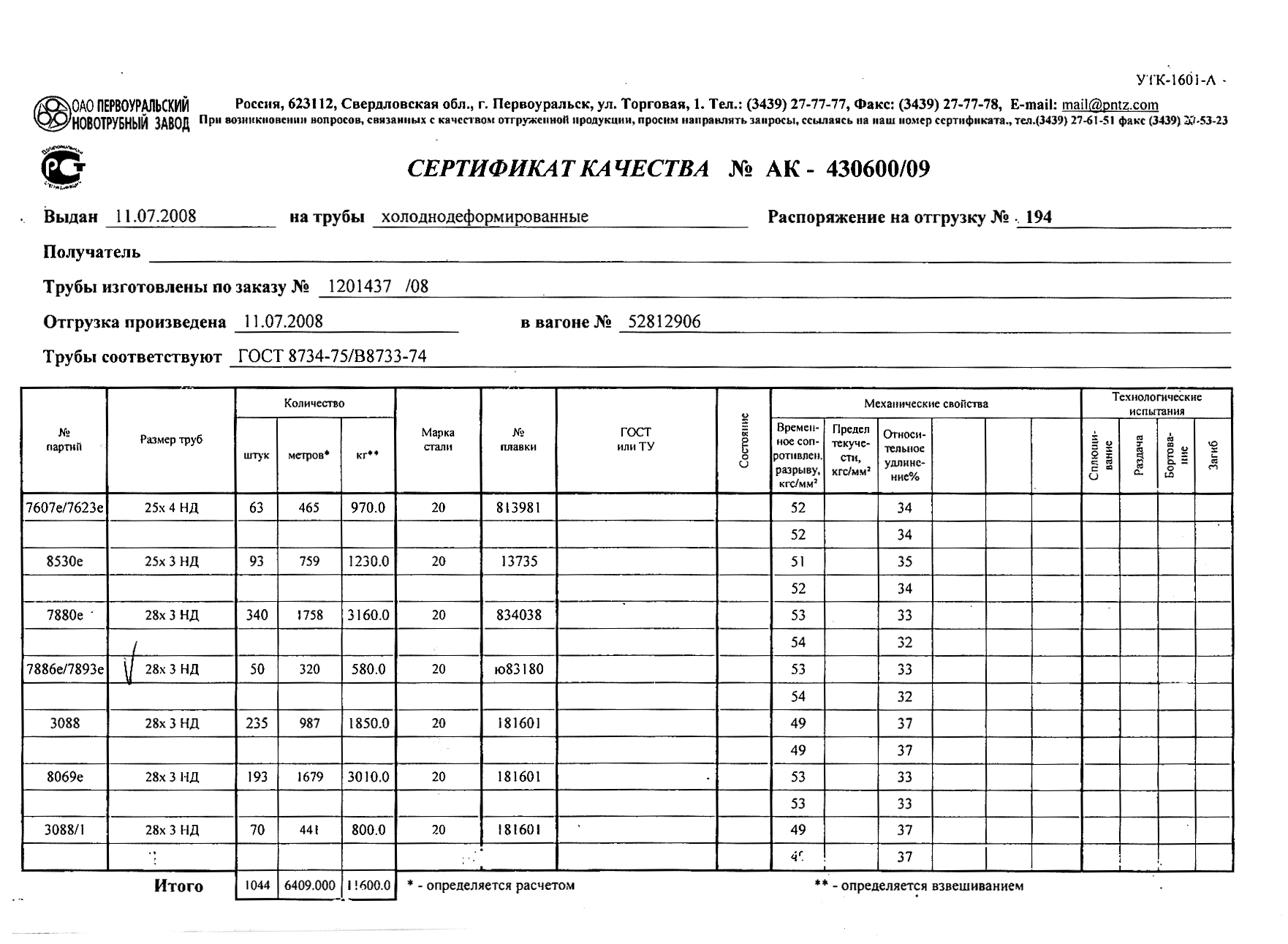 С каждой товарной позицией мы предоставляем все сертификаты и паспорта качества, а также товарно-транспортную накладную.
