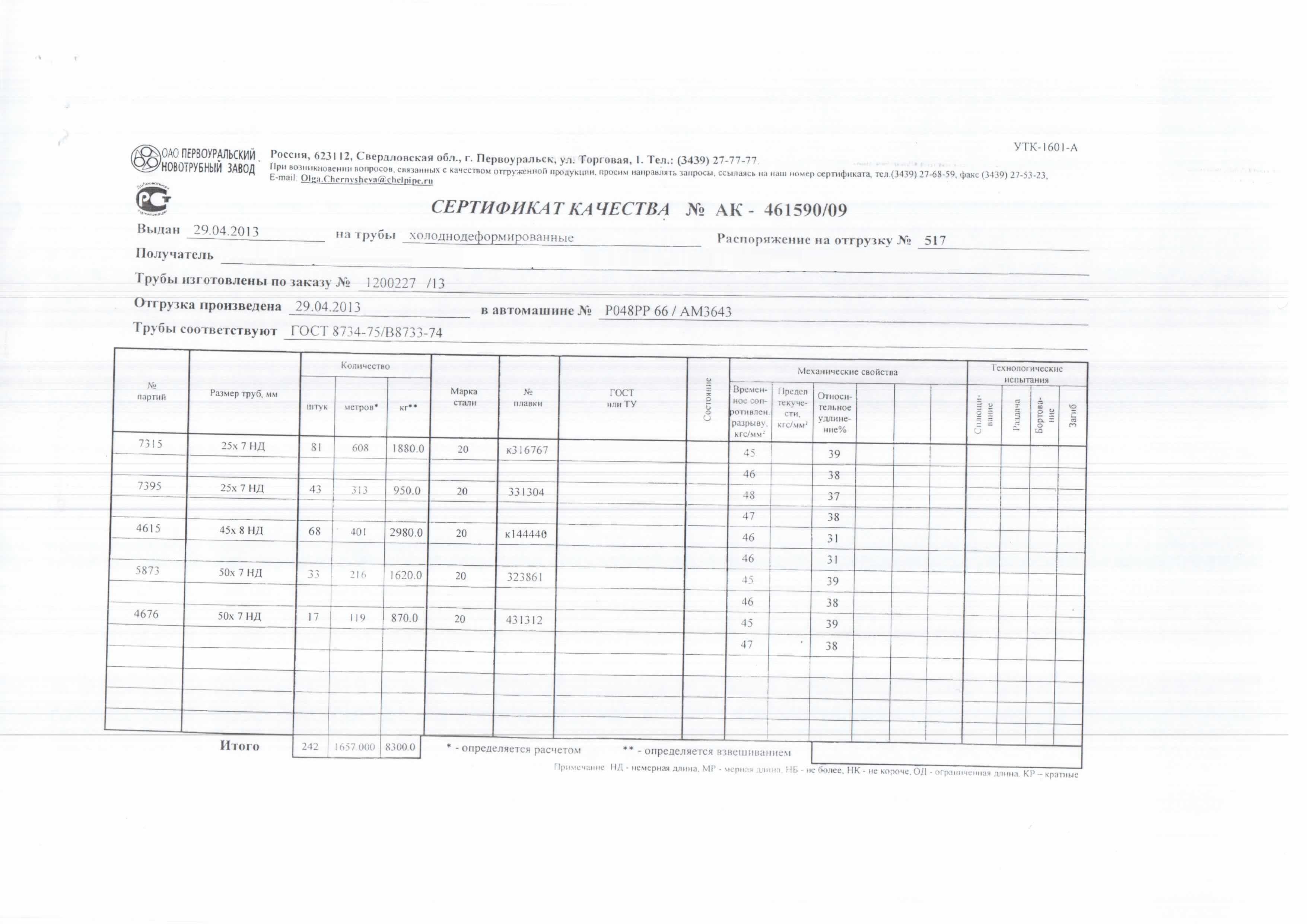 С каждой товарной позицией мы предоставляем все сертификаты и паспорта качества, а также товарно-транспортную накладную.