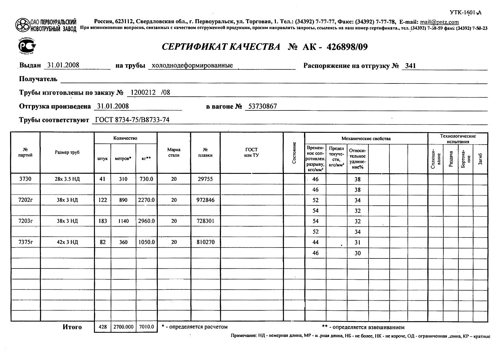 С каждой товарной позицией мы предоставляем все сертификаты и паспорта качества, а также товарно-транспортную накладную.