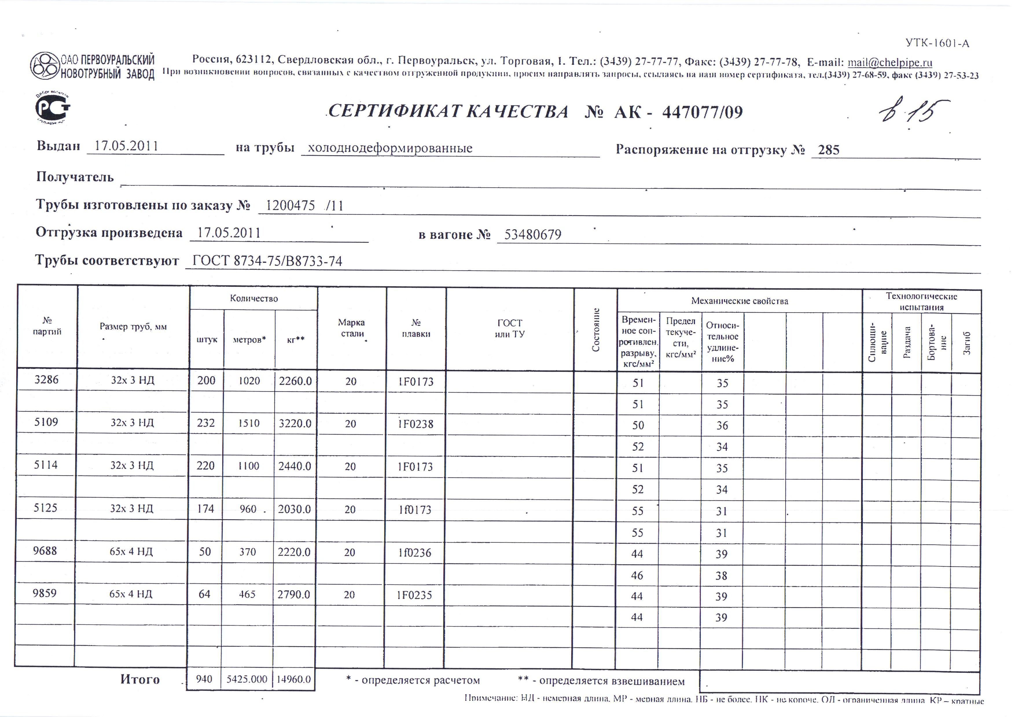 С каждой товарной позицией мы предоставляем все сертификаты и паспорта качества, а также товарно-транспортную накладную.