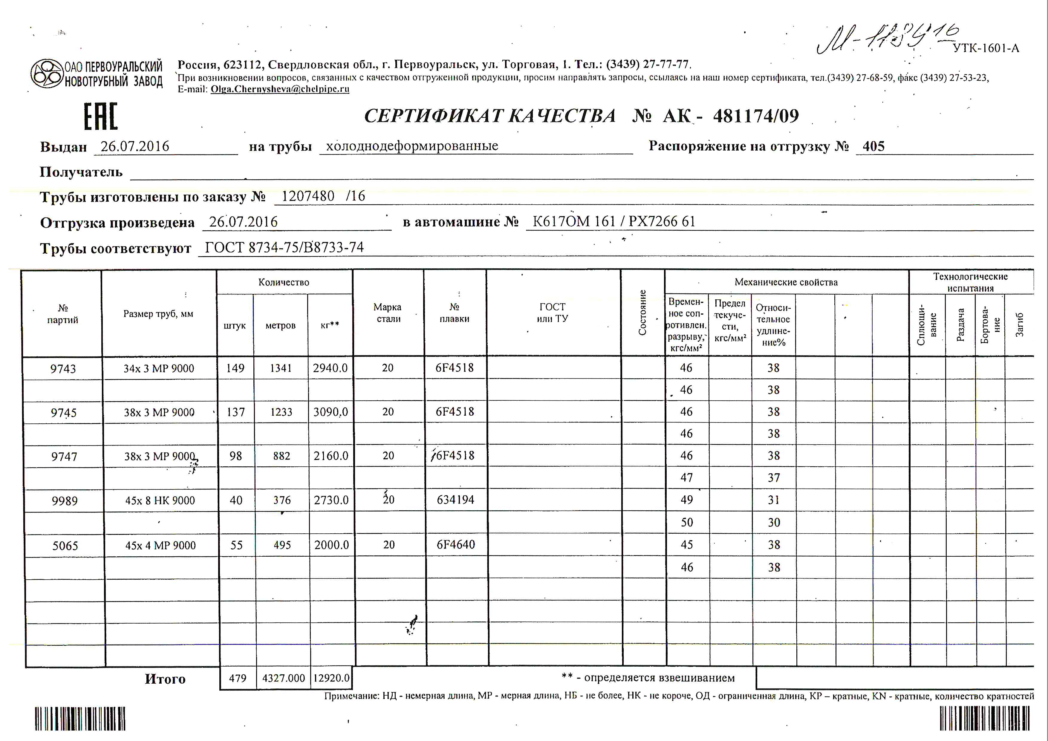 С каждой товарной позицией мы предоставляем все сертификаты и паспорта качества, а также товарно-транспортную накладную.