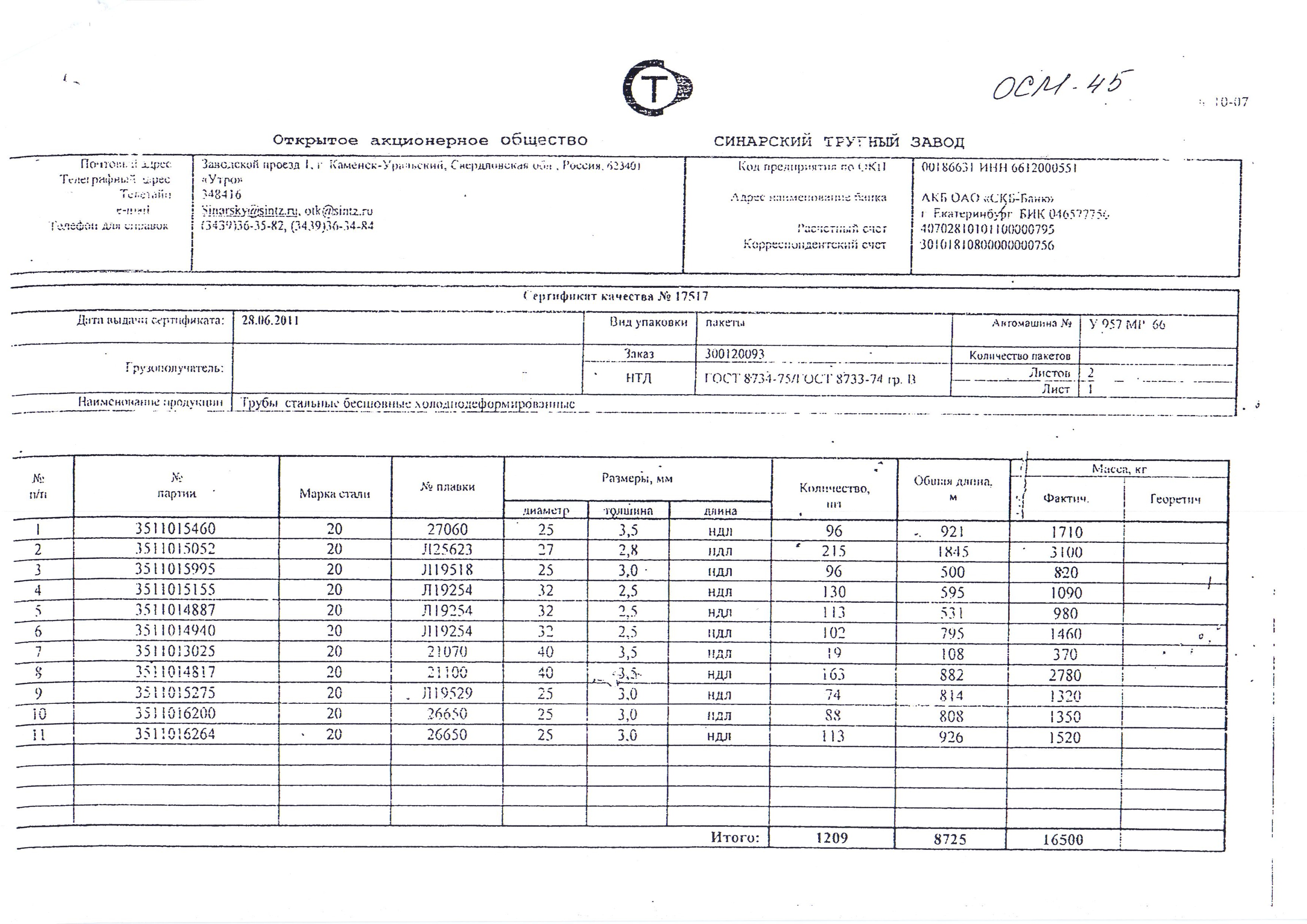 С каждой товарной позицией мы предоставляем все сертификаты и паспорта качества, а также товарно-транспортную накладную.