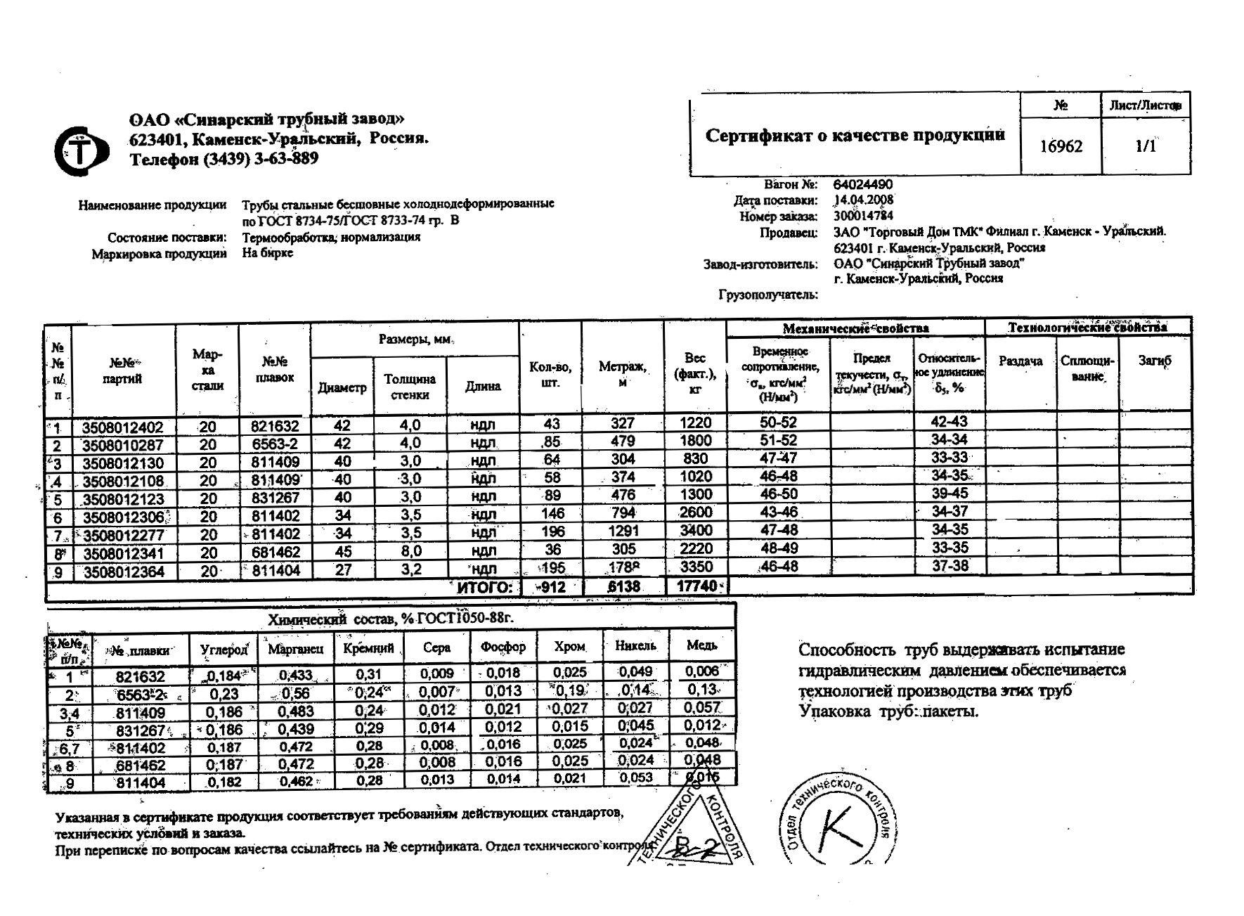 С каждой товарной позицией мы предоставляем все сертификаты и паспорта качества, а также товарно-транспортную накладную.