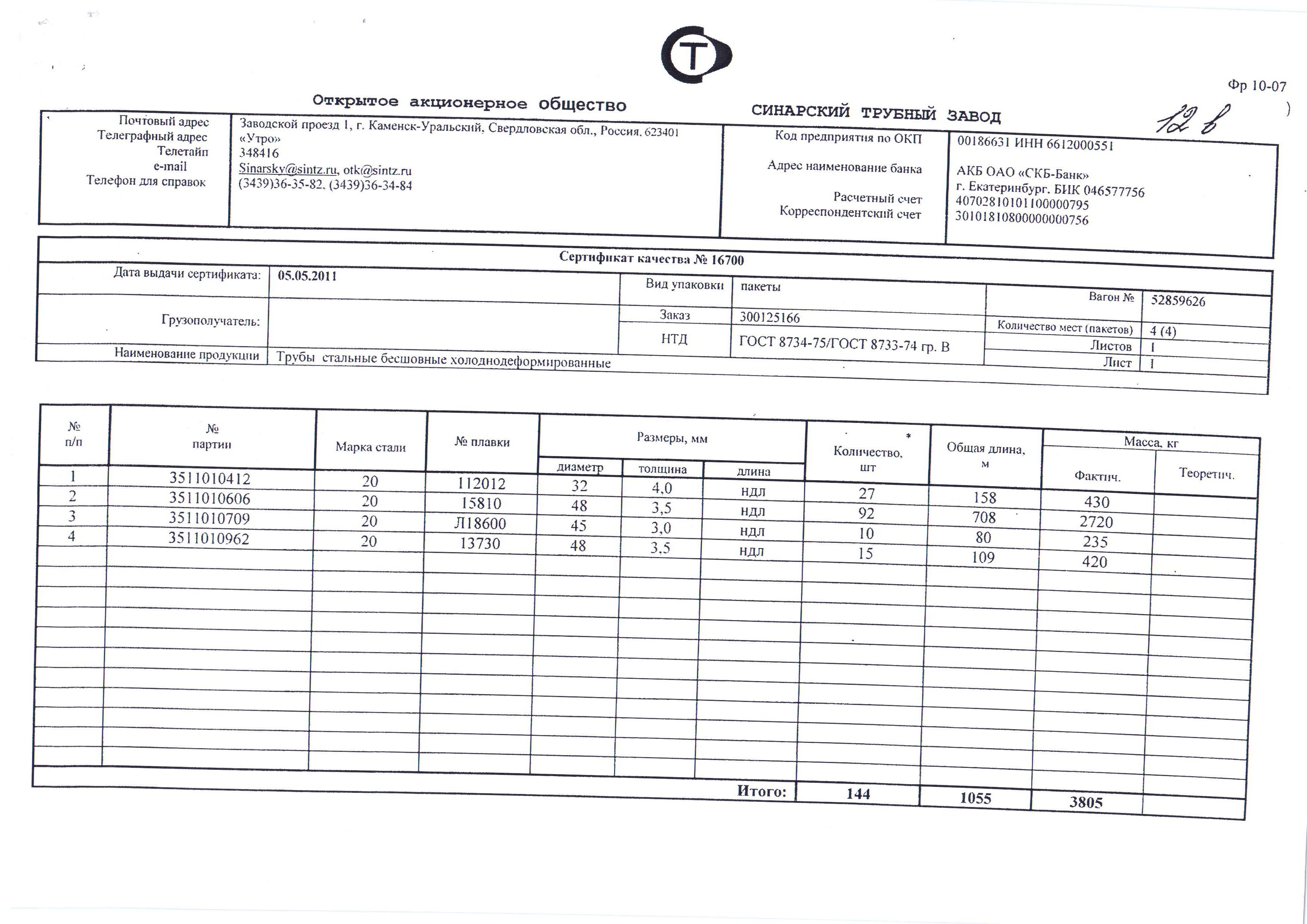 С каждой товарной позицией мы предоставляем все сертификаты и паспорта качества, а также товарно-транспортную накладную.
