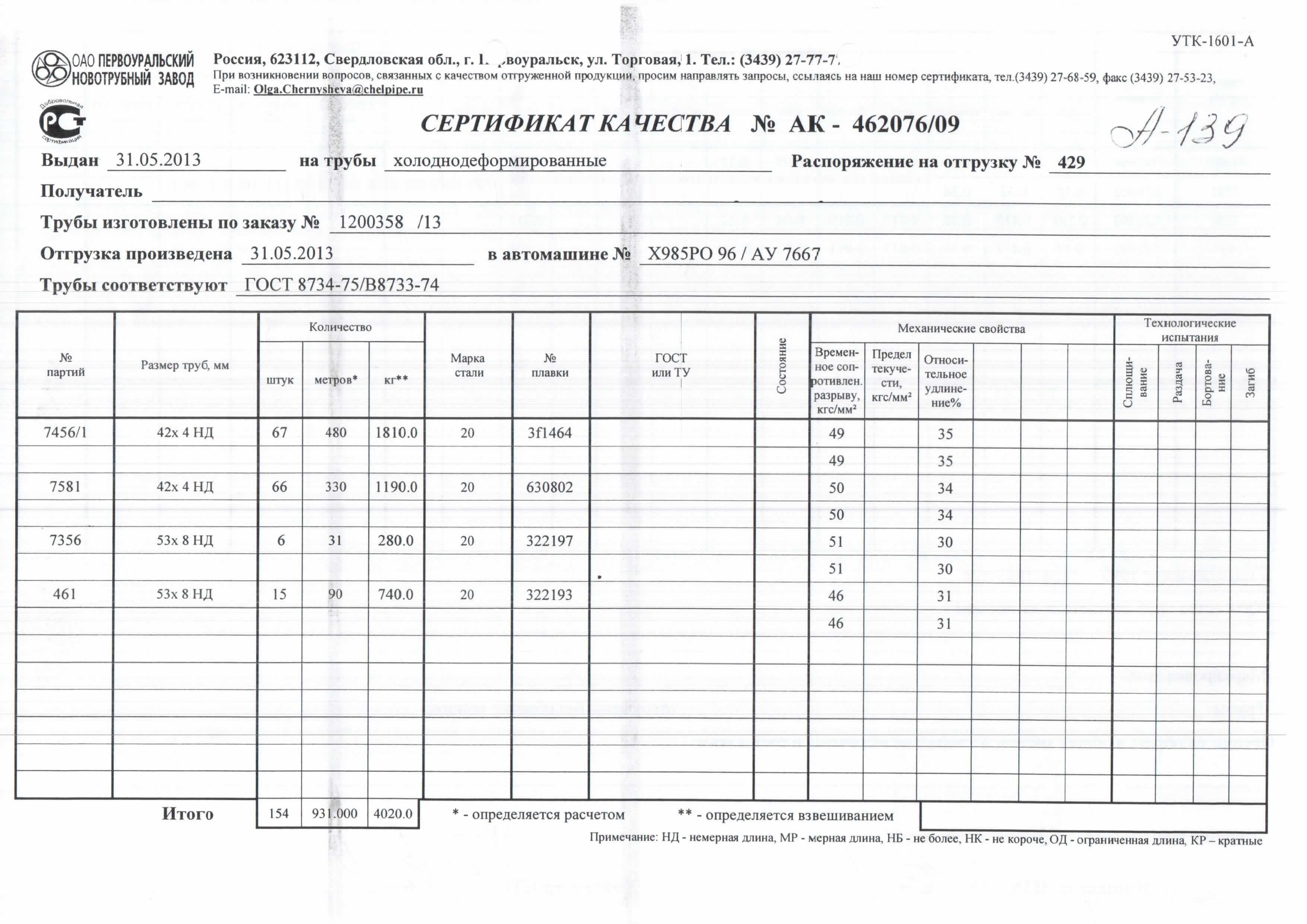 С каждой товарной позицией мы предоставляем все сертификаты и паспорта качества, а также товарно-транспортную накладную.