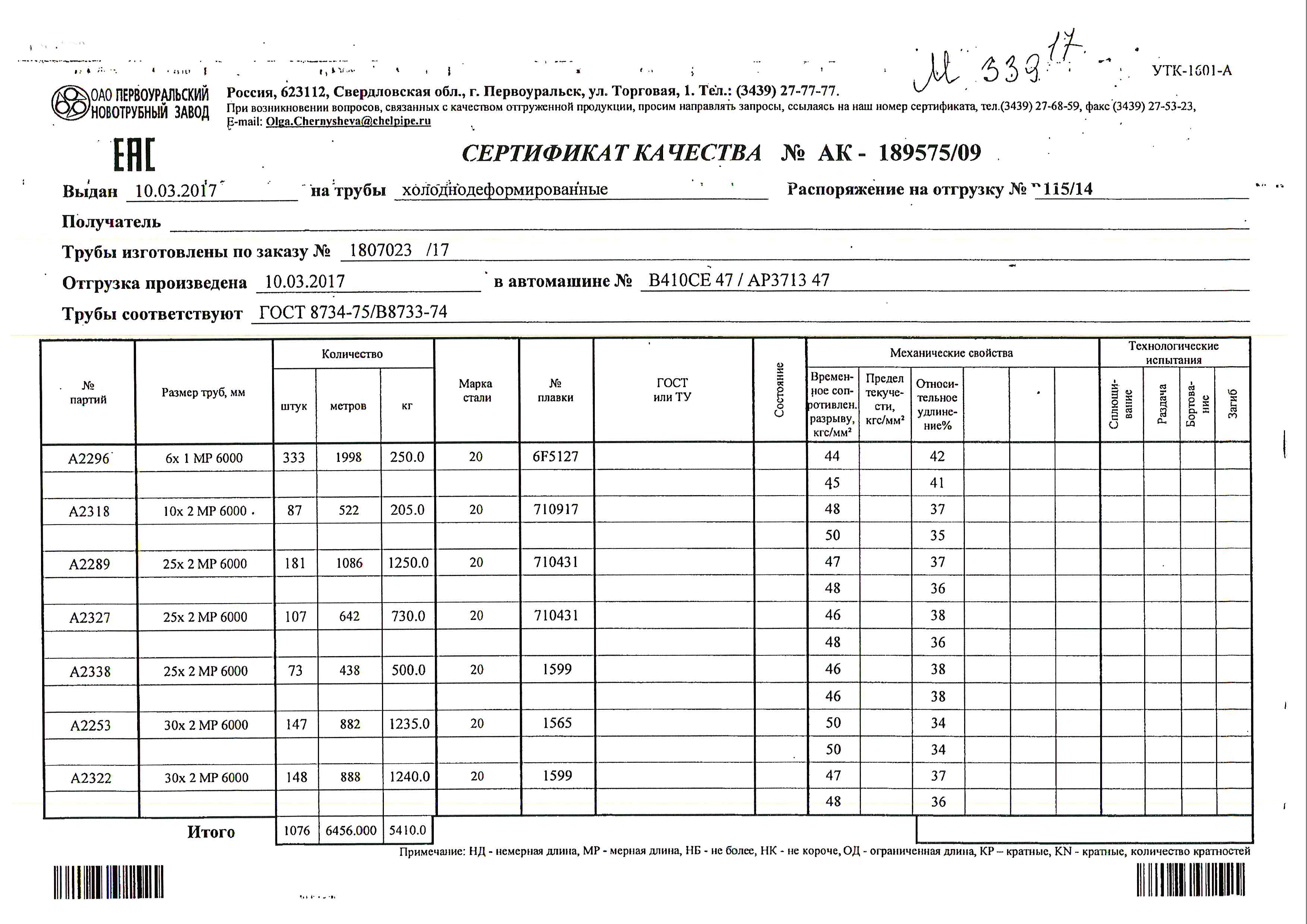 С каждой товарной позицией мы предоставляем все сертификаты и паспорта качества, а также товарно-транспортную накладную.