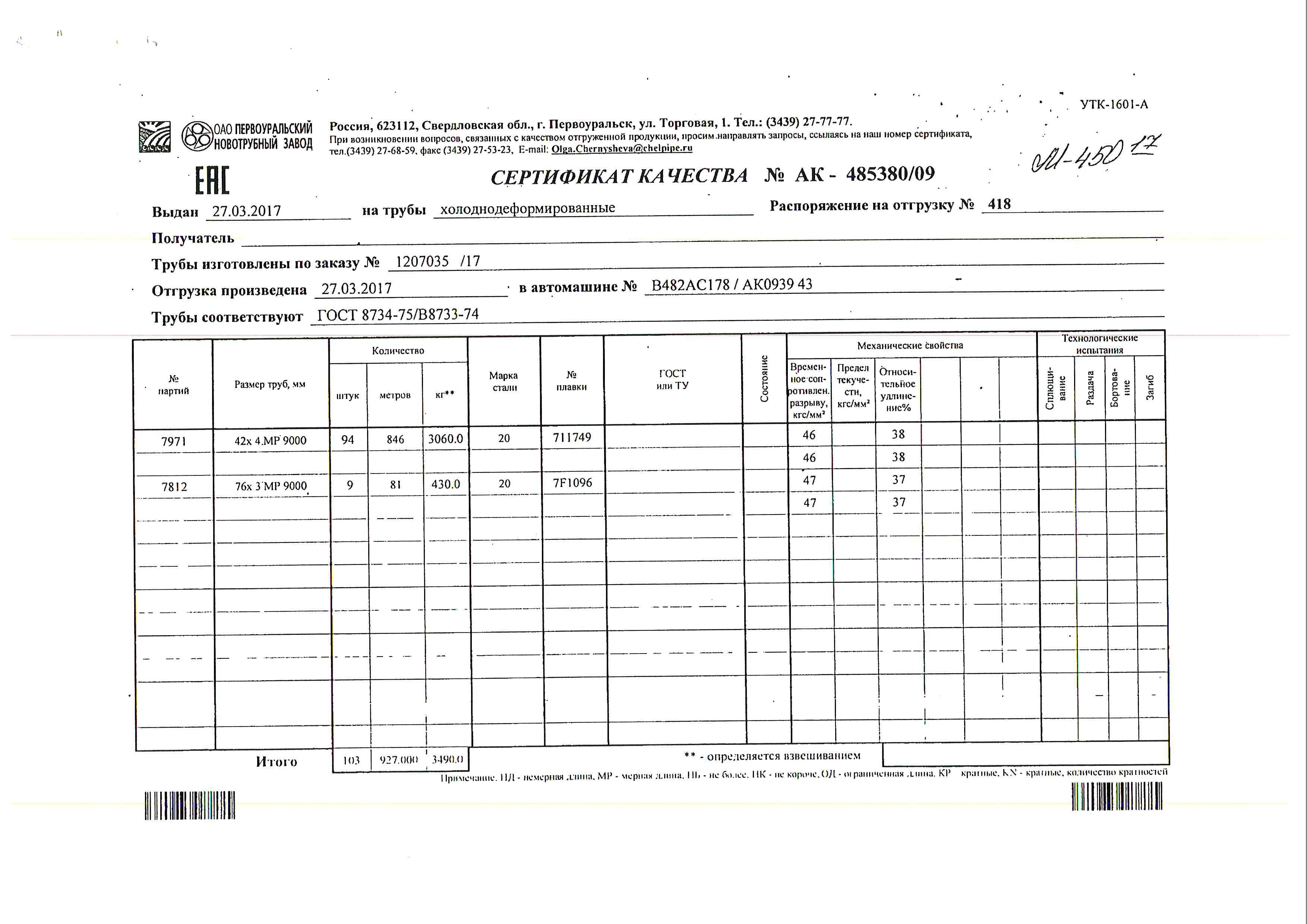 С каждой товарной позицией мы предоставляем все сертификаты и паспорта качества, а также товарно-транспортную накладную.