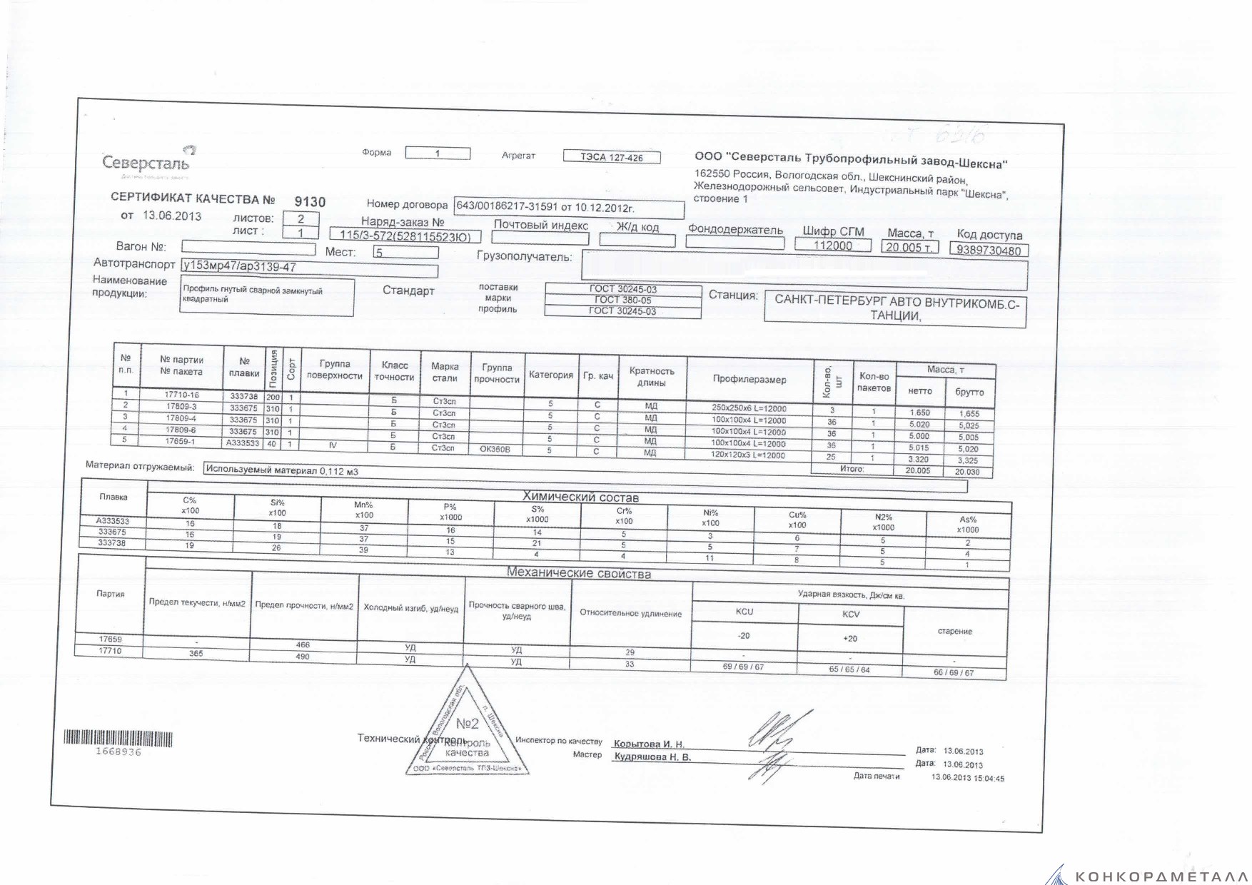 С каждой товарной позицией мы предоставляем все сертификаты и паспорта качества, а также товарно-транспортную накладную.