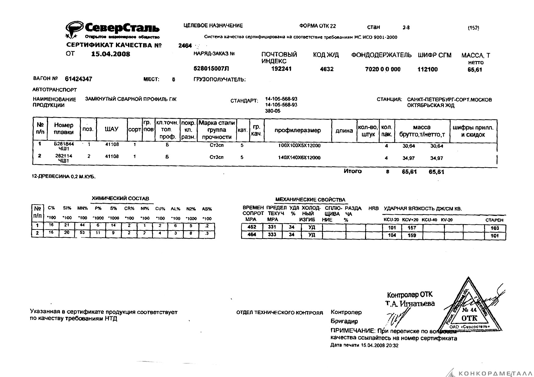 С каждой товарной позицией мы предоставляем все сертификаты и паспорта качества, а также товарно-транспортную накладную.